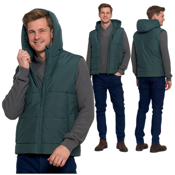 BEZRĘKAWNIK MĘSKI PIKOWANY KAMIZELKA Z KAPTUREM NA JESIEŃ CIEPŁA MORAJ