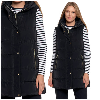 Długa KAMIZELKA DAMSKA Do Kolan Pikowana z Kapturem Bezrękawnik MORAJ