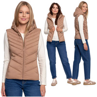 KAMIZELKA DAMSKA KRÓTKA PIKOWANA Z KAPTUREM BEZRĘKAWNIK NA JESIEŃ MORAJ