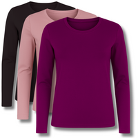GŁADKA BLUZKA DAMSKA KOSZULKA Z DŁUGIM RĘKAWEM MODNA MORAJ 3-PAK