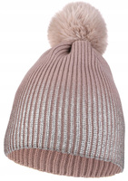 Czapka Damska Zimowa z Pomponem Ciepła Srebrno Beżowa Na Chłodne Dni MORAJ