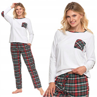 PIŻAMA DAMSKA Dwuczęściowa w Kratę Flanelowa Złote Przeszycia Modna MORAJ
