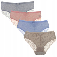Figi Damskie Bikini Majtki Bawełniane Koronka w Kwiaty Modne 4-pak MORAJ