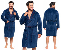 Szlafrok Męski Długi Puszysty granatowy MORAJ