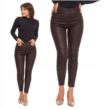 LEGGINSY DAMSKIE OCIEPLANE Prążkowane Wysoki Stan Modny Kolor MORAJ
