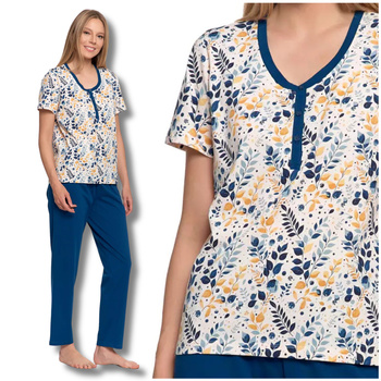 PIŻAMA DAMSKA W KWIATKI DWUCZĘŚCIOWA KRÓTKI RĘKAW DŁUGIE SPODNIE MORAJ
