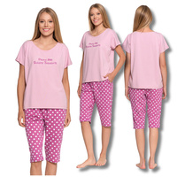PIŻAMA DAMSKA DWUCZĘŚCIOWA MORAJ KRÓTKI RĘKAW SPODNIE 3/4 W GROSZKI