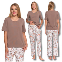 PIŻAMA DAMSKA DWUCZĘŚCIOWA MORAJ KRÓTKI RĘKAW SZEROKIE SPODNIE PANTERKA