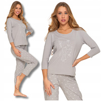 Piżama Damska 3/4 Rękaw i Spodnie Kwiaty Kobieca Wygodna Bawełniana MORAJ