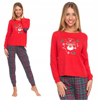 PIŻAMA DAMSKA Dwuczęściowa w Kratę Flanelowa Złote Przeszycia Modna MORAJ