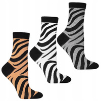 Długie Skarpety Damskie Naszywka Kota Prążkowane Skarpety MORAJ 3-PAK