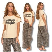 PIŻAMA DAMSKA DWUCZĘŚCIOWA MORAJ KRÓTKI RĘKAW SZEROKIE SPODNIE PANTERKA