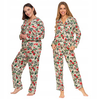 Elegancka PIŻAMA DAMSKA Wzorzysta Koszulowa Góra Długie Spodnie MORAJ