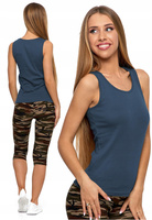 TOP DAMSKI Dopasowany Bokserka Koszulka Gładka Bez Rękawów Granat MORAJ