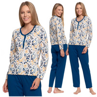 PIŻAMA DAMSKA W KWIATKI DWUCZĘŚCIOWA KRÓTKI RĘKAW DŁUGIE SPODNIE MORAJ