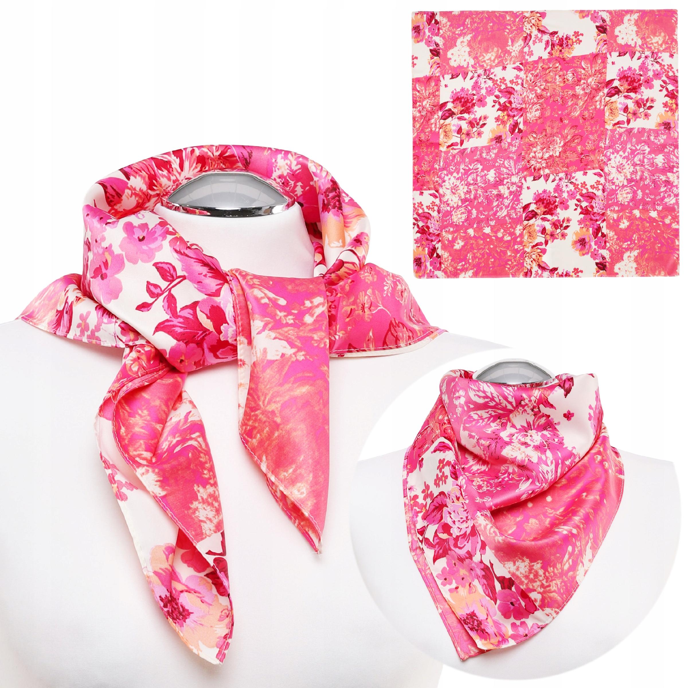 Apaszka Damska MORAJ Elegancka Modna Delikatny Szalik Szal Kwiaty Różowa