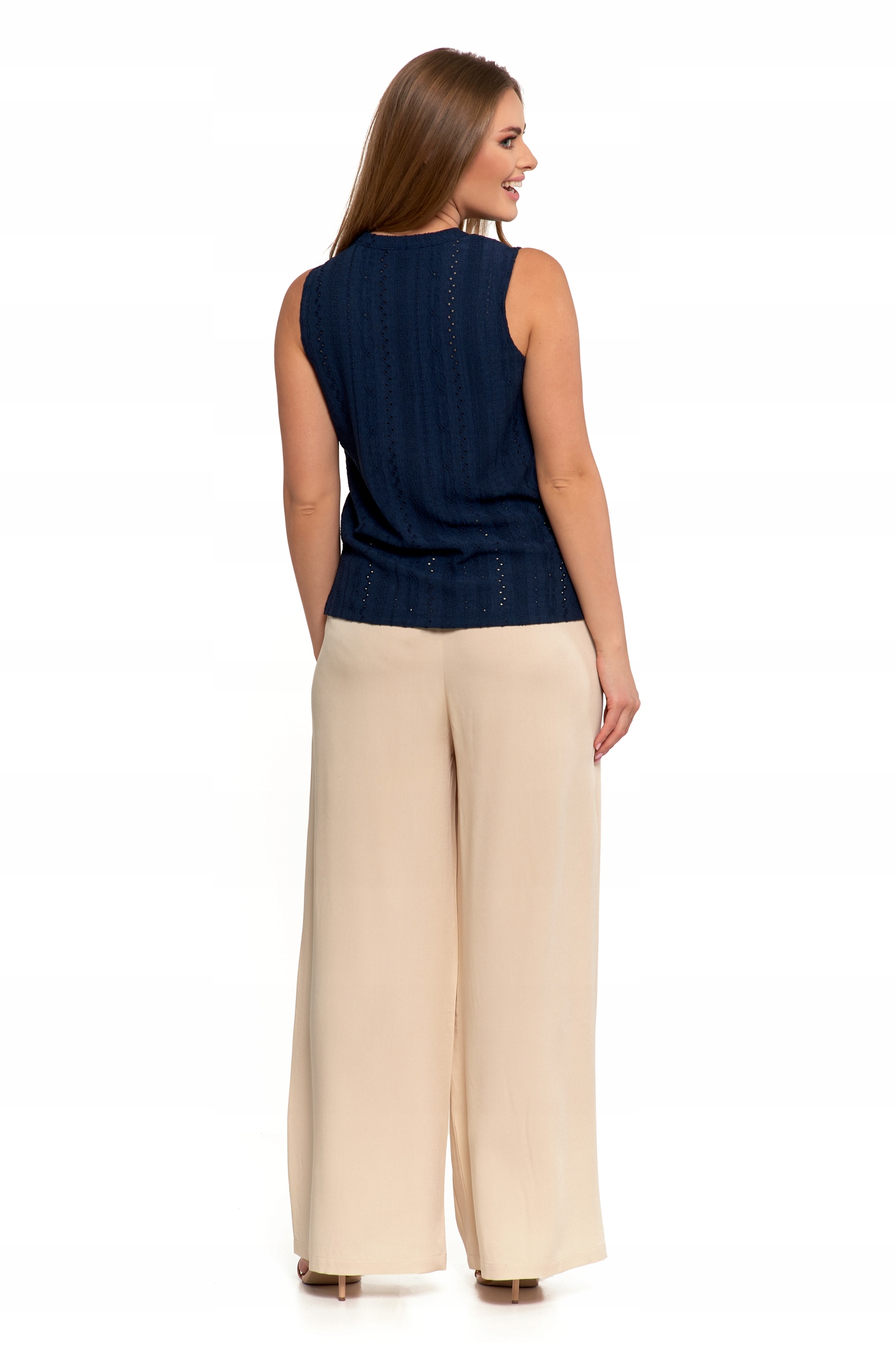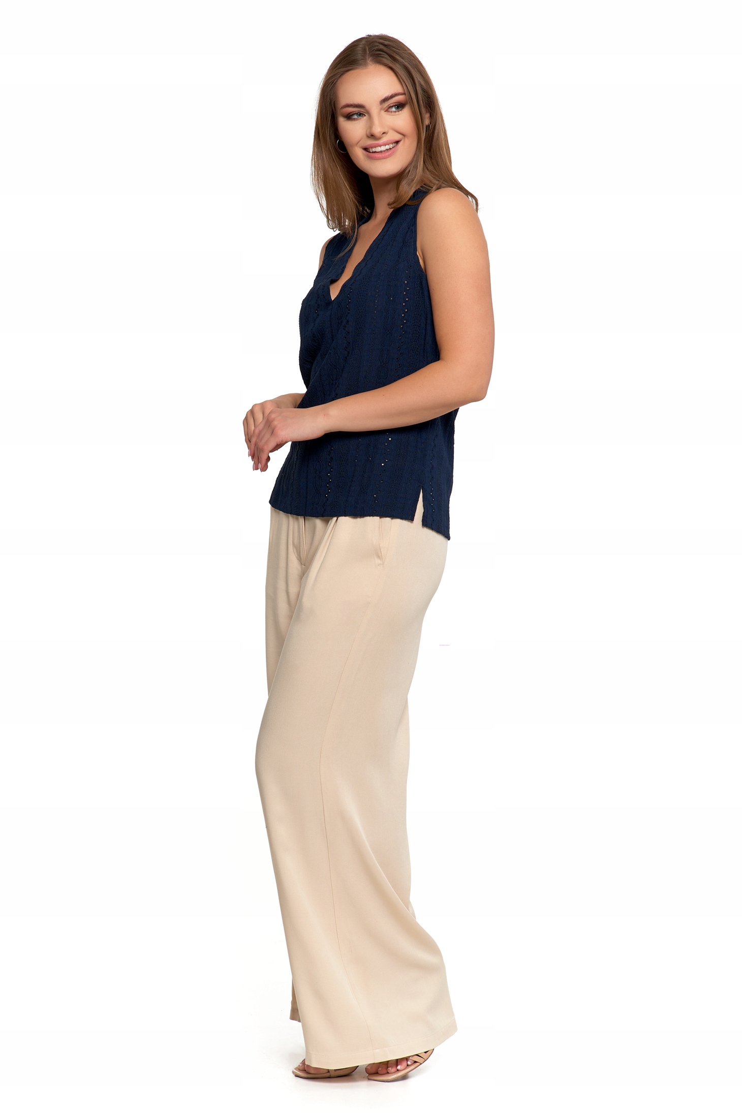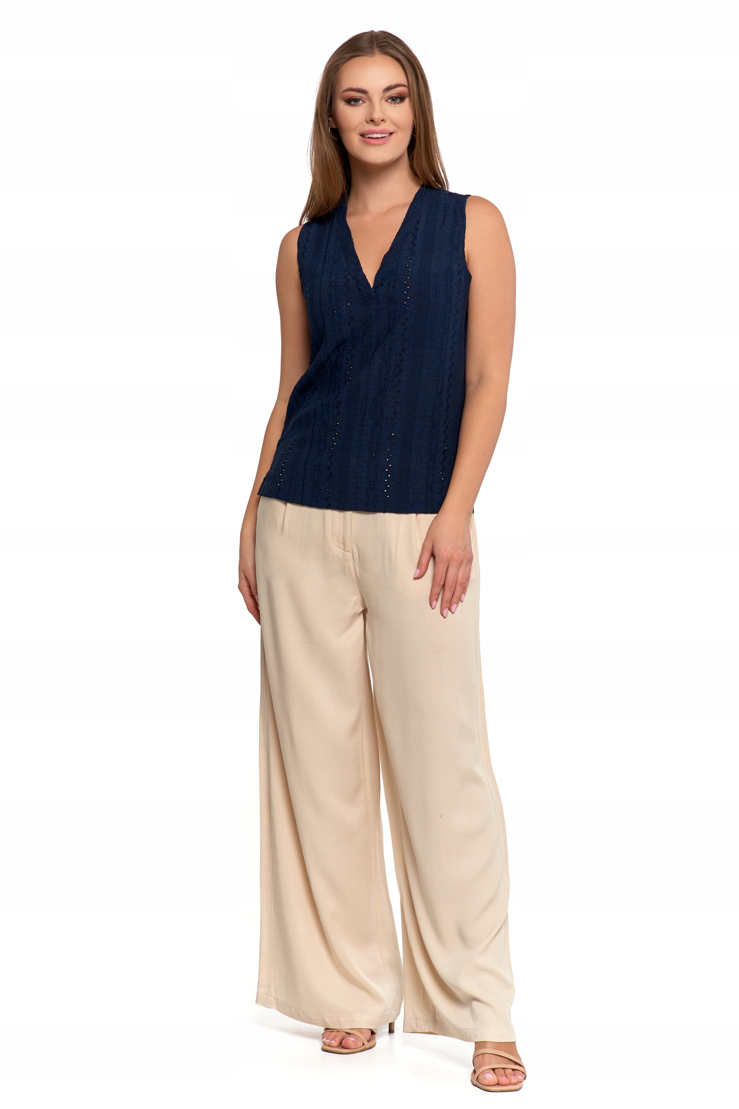 Ta elegancka bluzka bez rękawów to doskonała opcja na ciepłe dni, łącząca wygodę z subtelnym urokiem. Wykonana z lekkich materiałów, idealnie sprawdza się w codziennych, letnich stylizacjach, zapewniając komfort przez cały dzień. Dzięki klasycznemu krojowi i delikatnym detalom, jest uniwersalna i pasuje do wielu okazji.