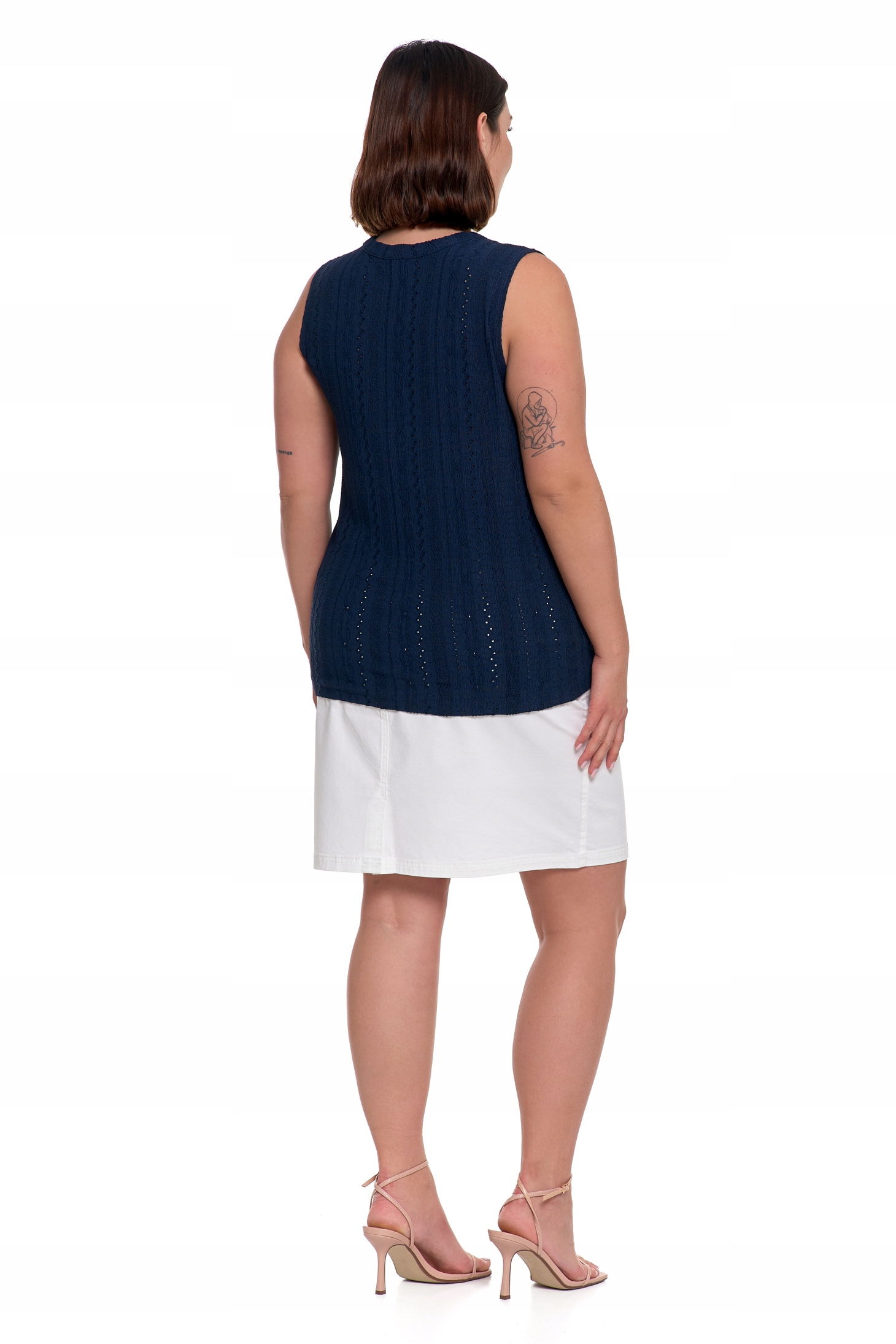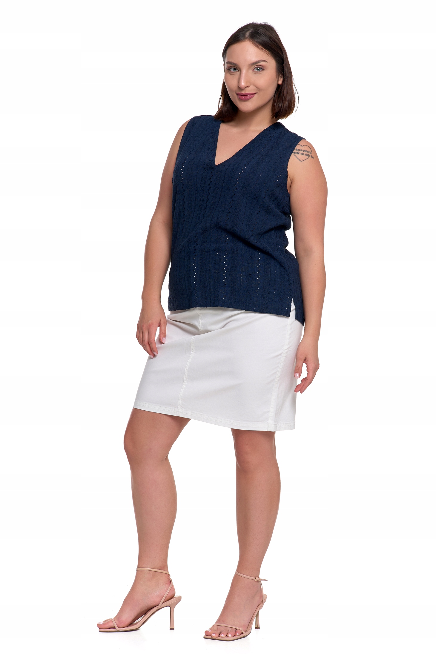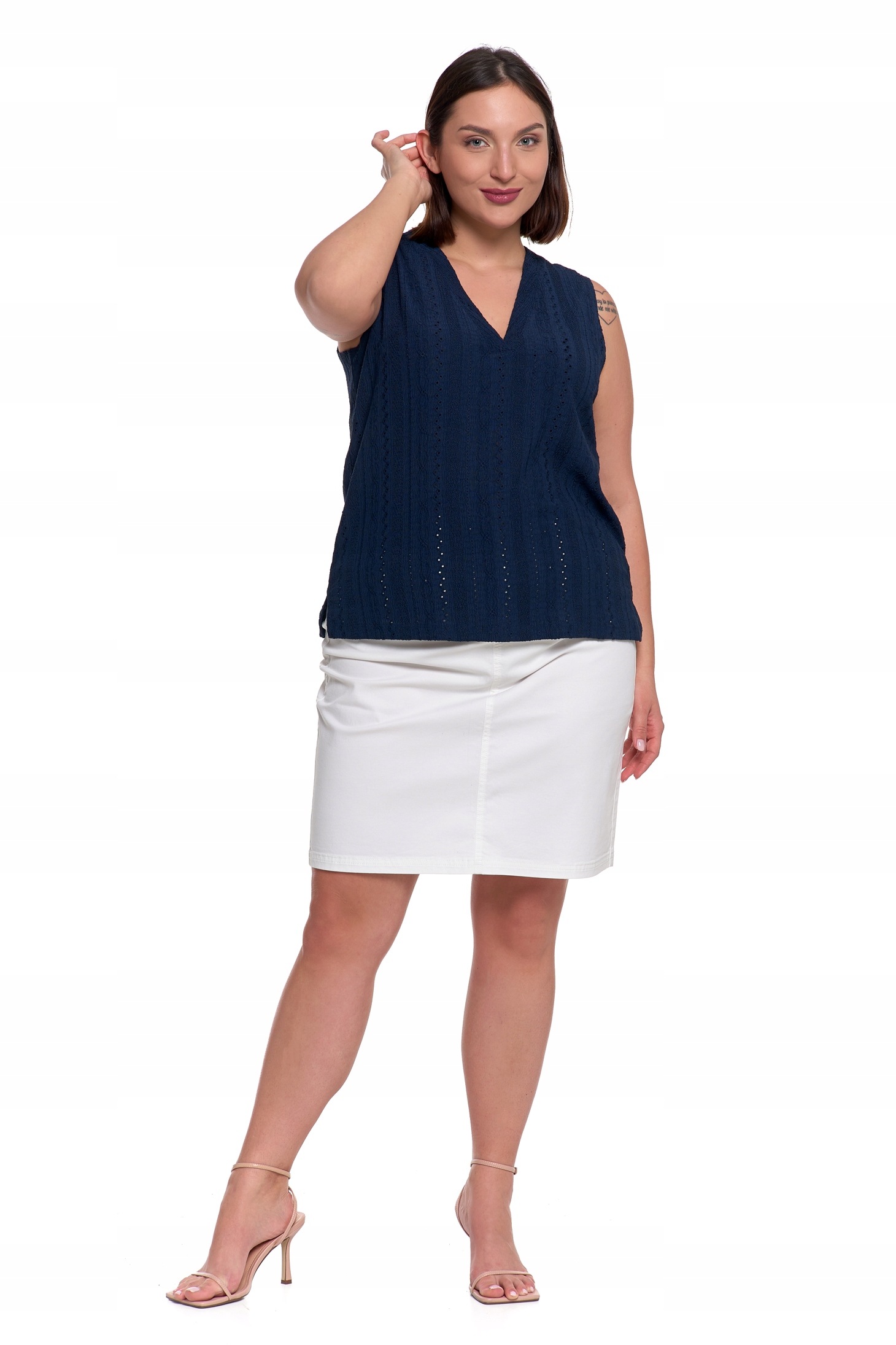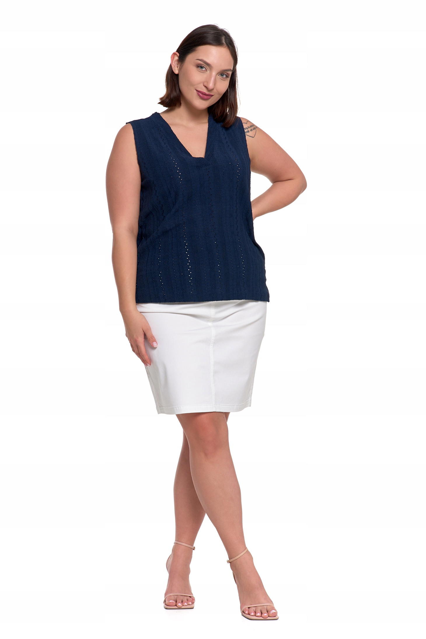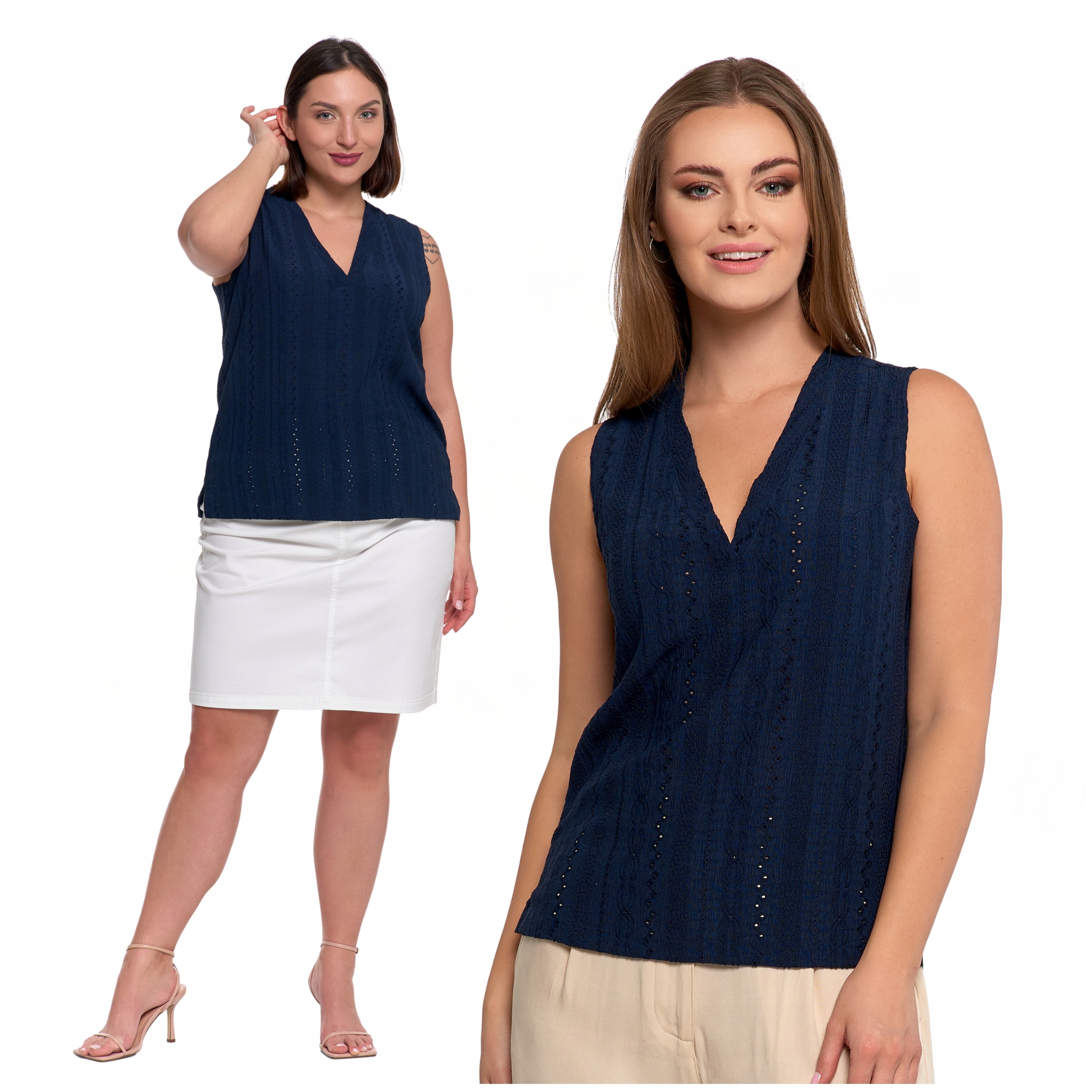 Ażurowa Bluzka Damska Bez Rękawów Dekolt w Serek Modna Koszulka Top MORAJ