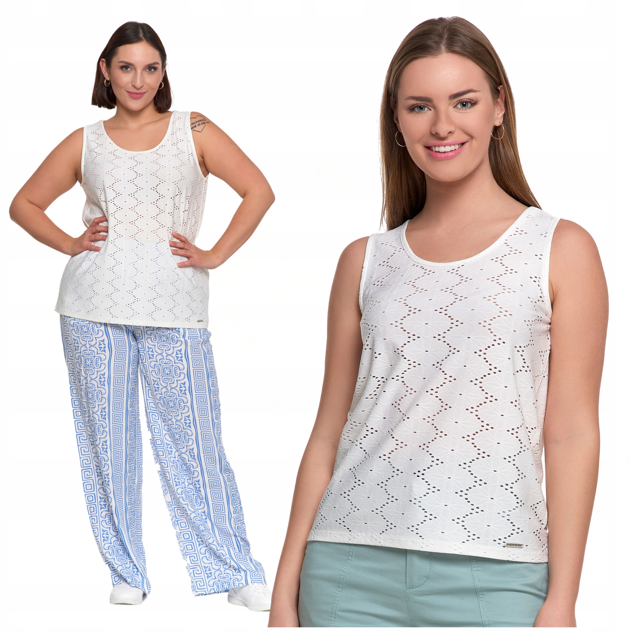 Ażurowa Bluzka Damska Bez Rękawów Top Elegancka Bokserka Koszulka MORAJ