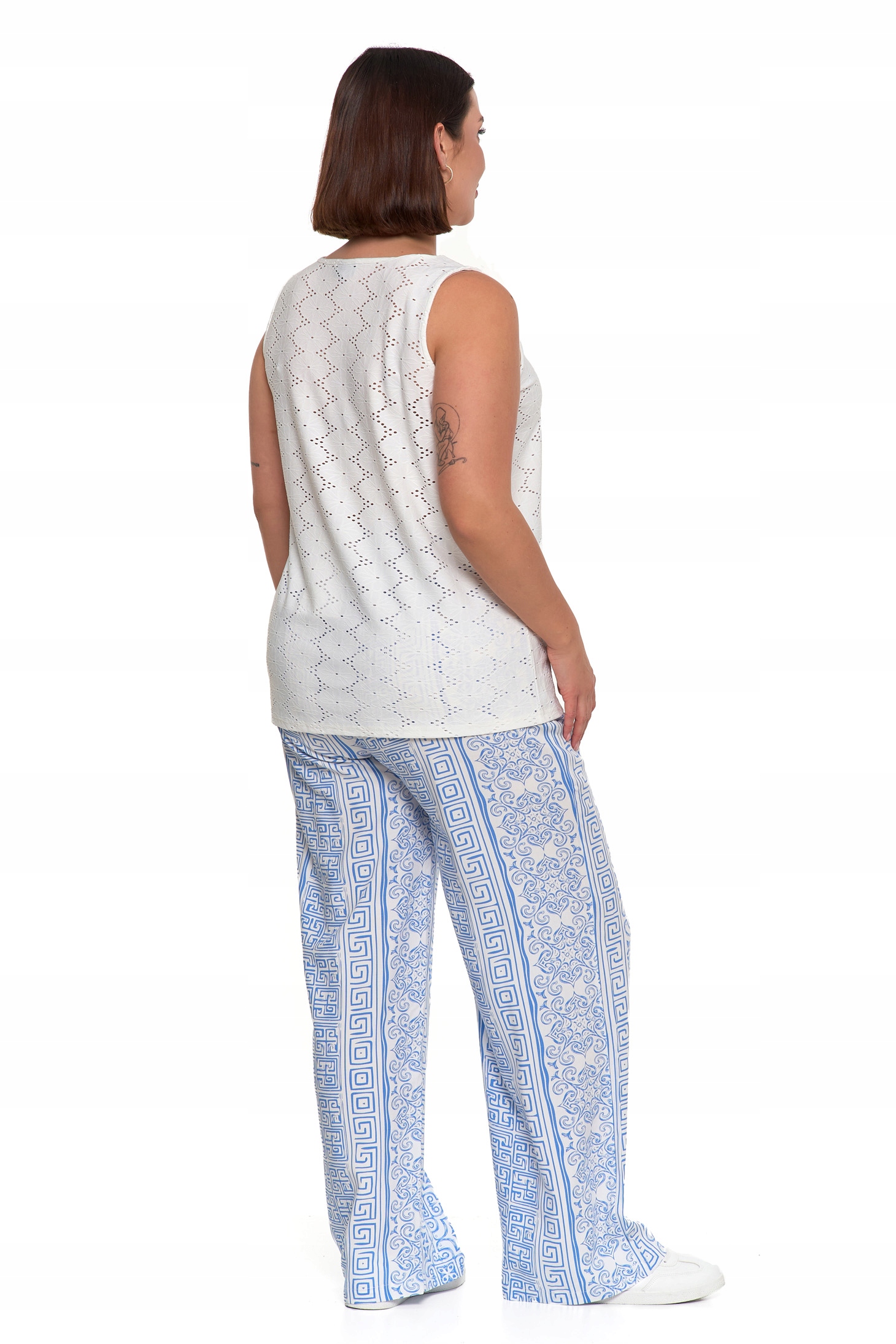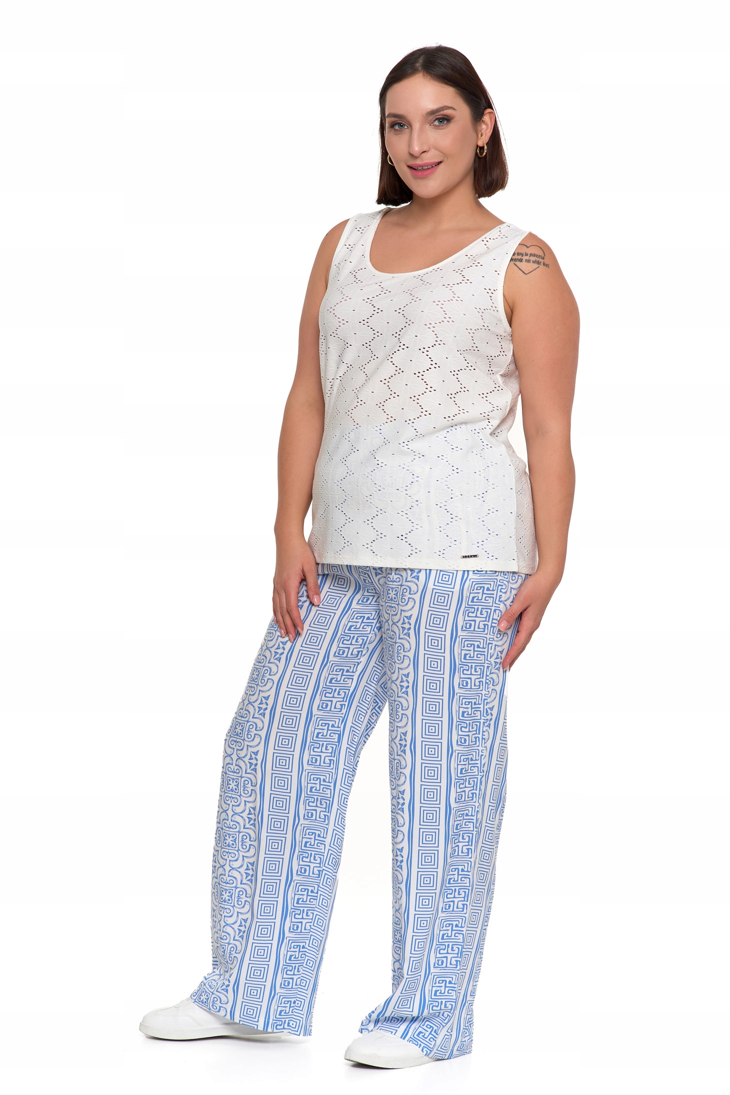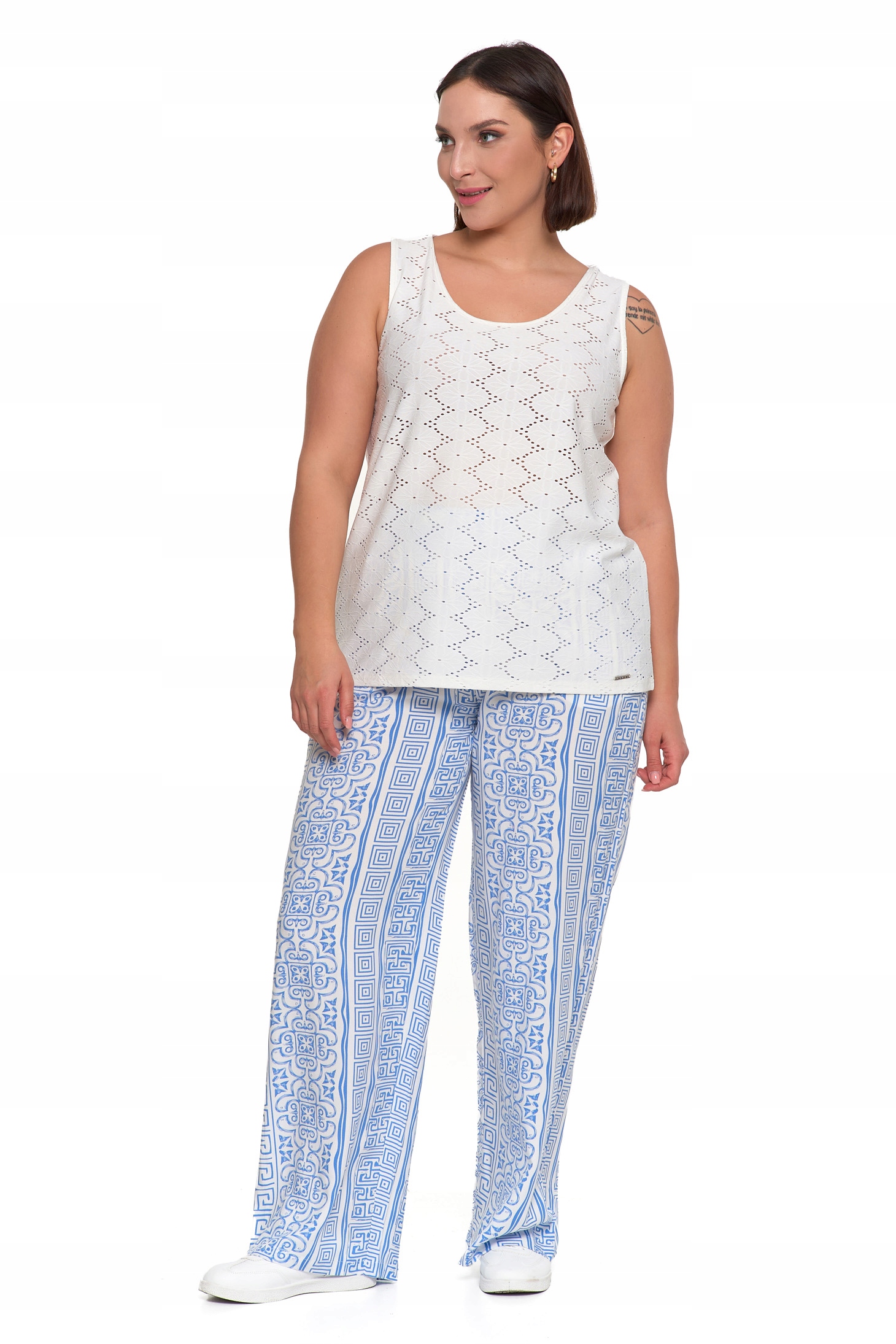 Ta bluzka bez rękawów to idealne połączenie kobiecego wdzięku i wygody. Ażurowy wzór nadaje jej romantyczny charakter, a klasyczny, lekko luźny krój gwarantuje swobodę ruchów i komfort przez cały dzień.
