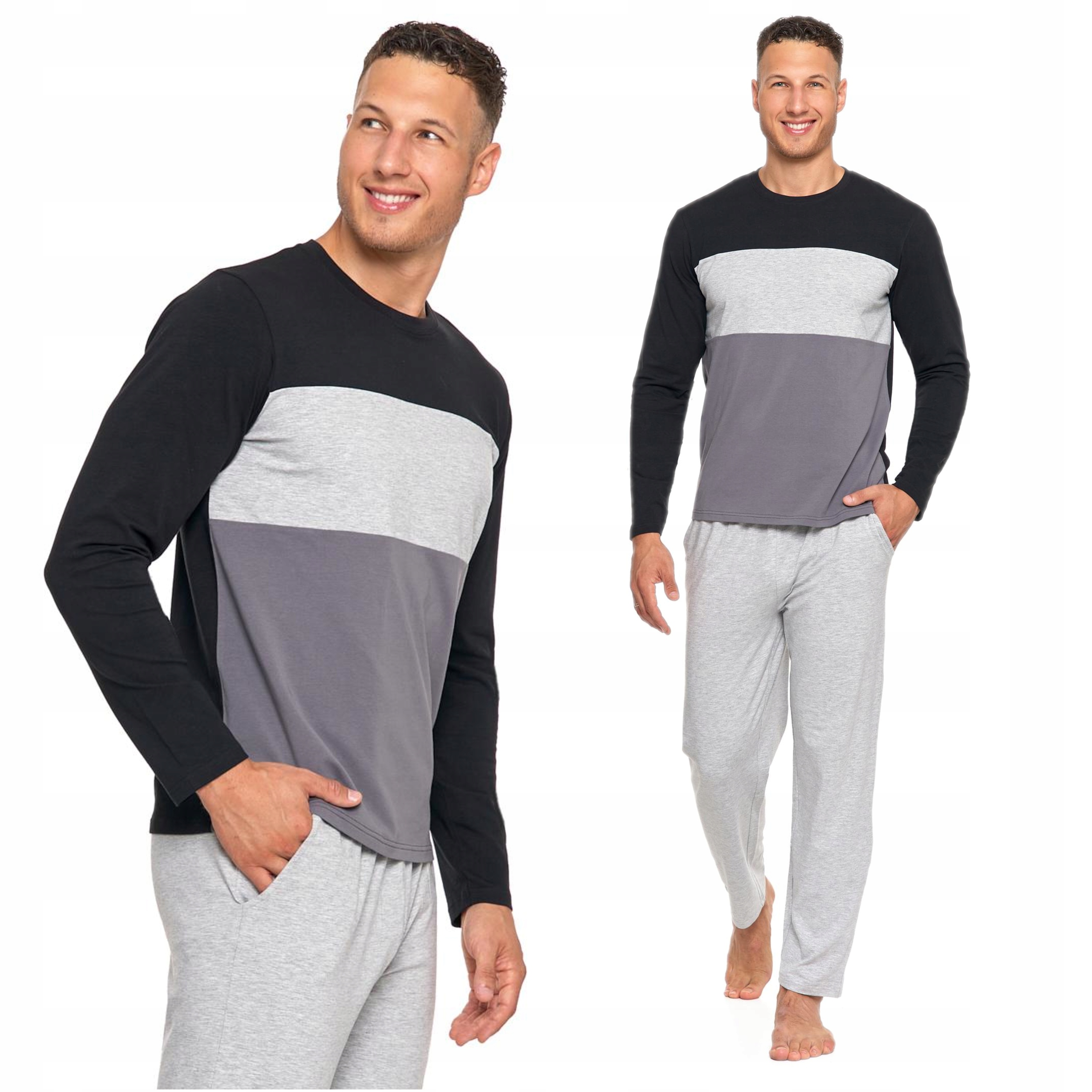 Bawełniana PIŻAMA MĘSKA Na Długi Rękaw Proste Spodnie Wygodna MORAJ