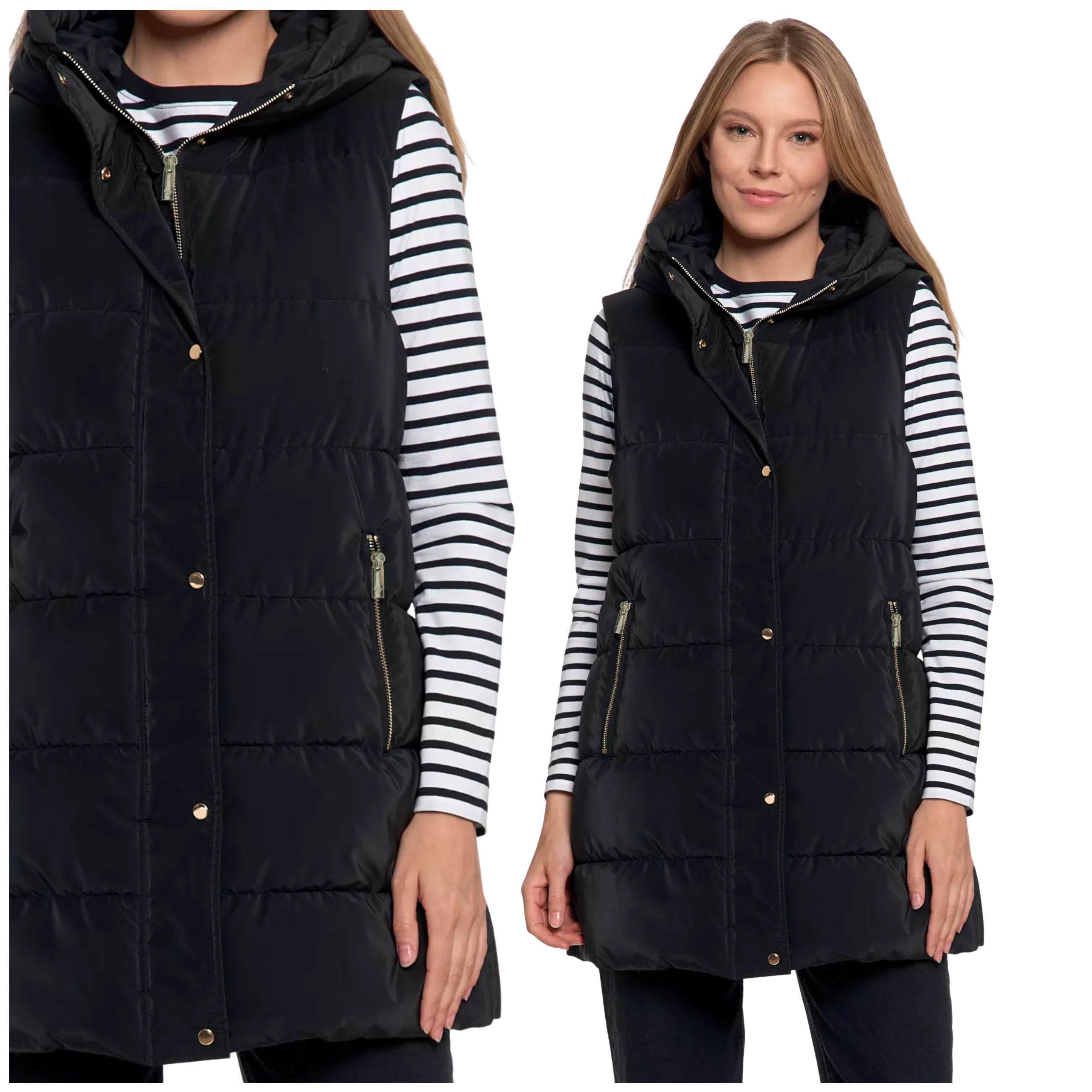 Komfort, Ciepło i Styl: Długa Kamizelka Pikowana z Kapturem