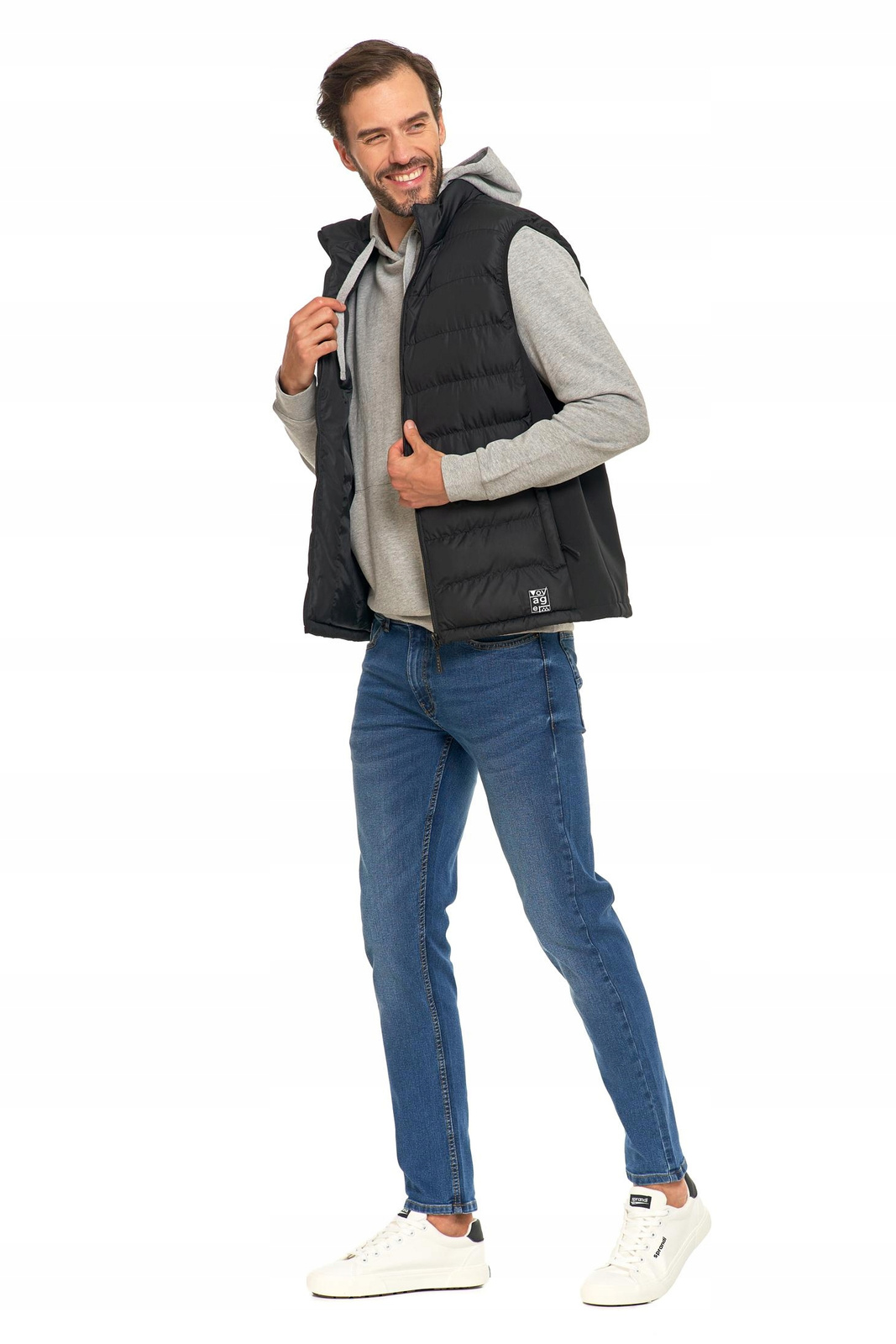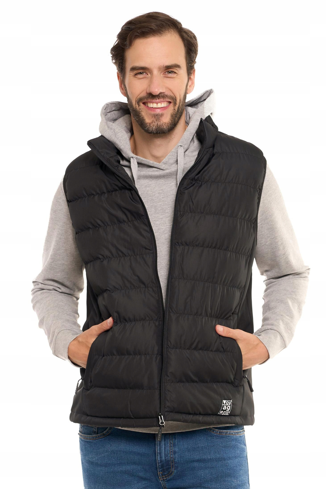 Męska pikowana kamizelka, która łączy funkcjonalność z nowoczesnym stylem. Ten bezrękawnik jest idealnym wyborem na chłodniejsze dni, kiedy potrzebujesz dodatkowej warstwy ochrony przed wiatrem.