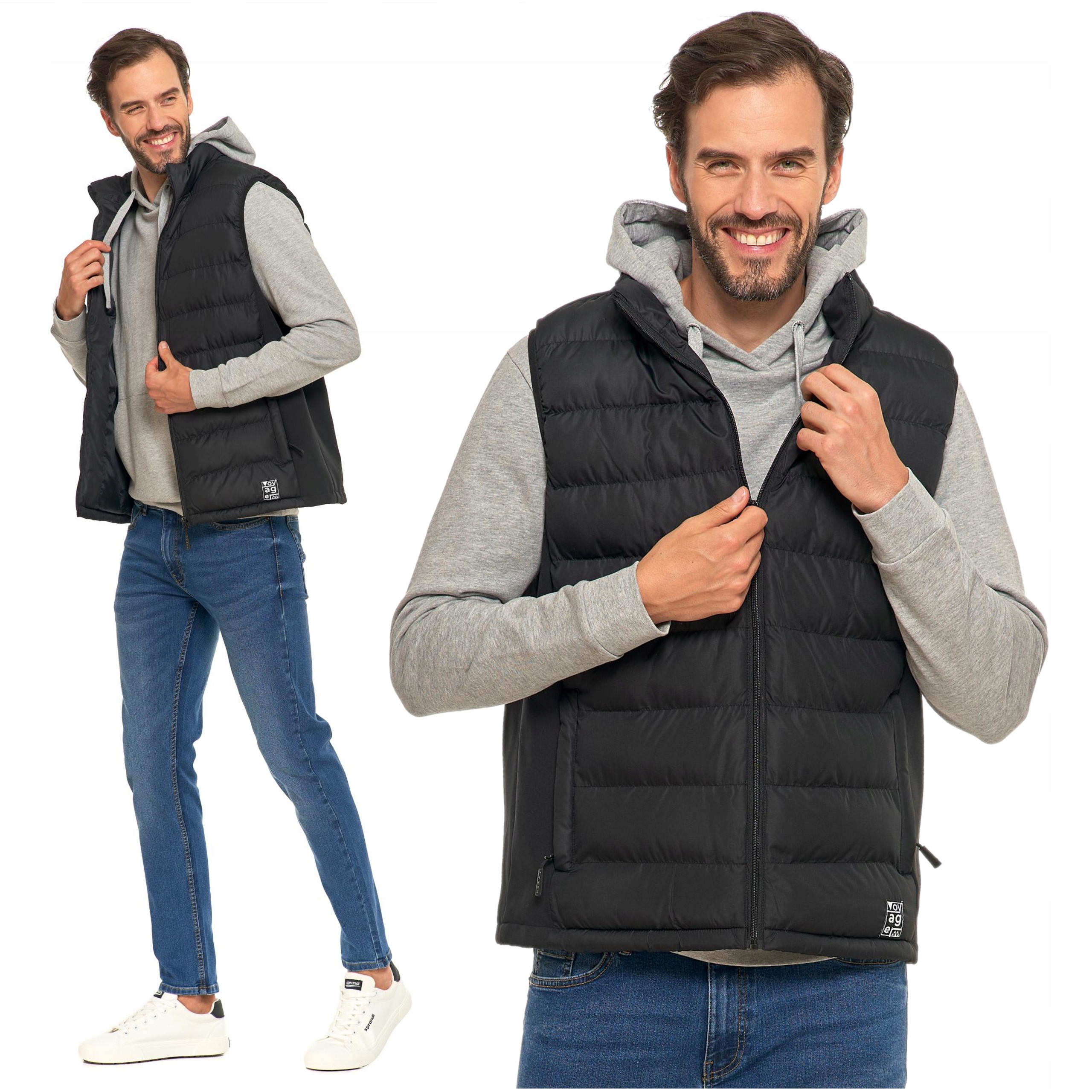BEZRĘKAWNIK Męski Kamizelka Czarna Pikowana na jesień Ciepła Modna MORAJ