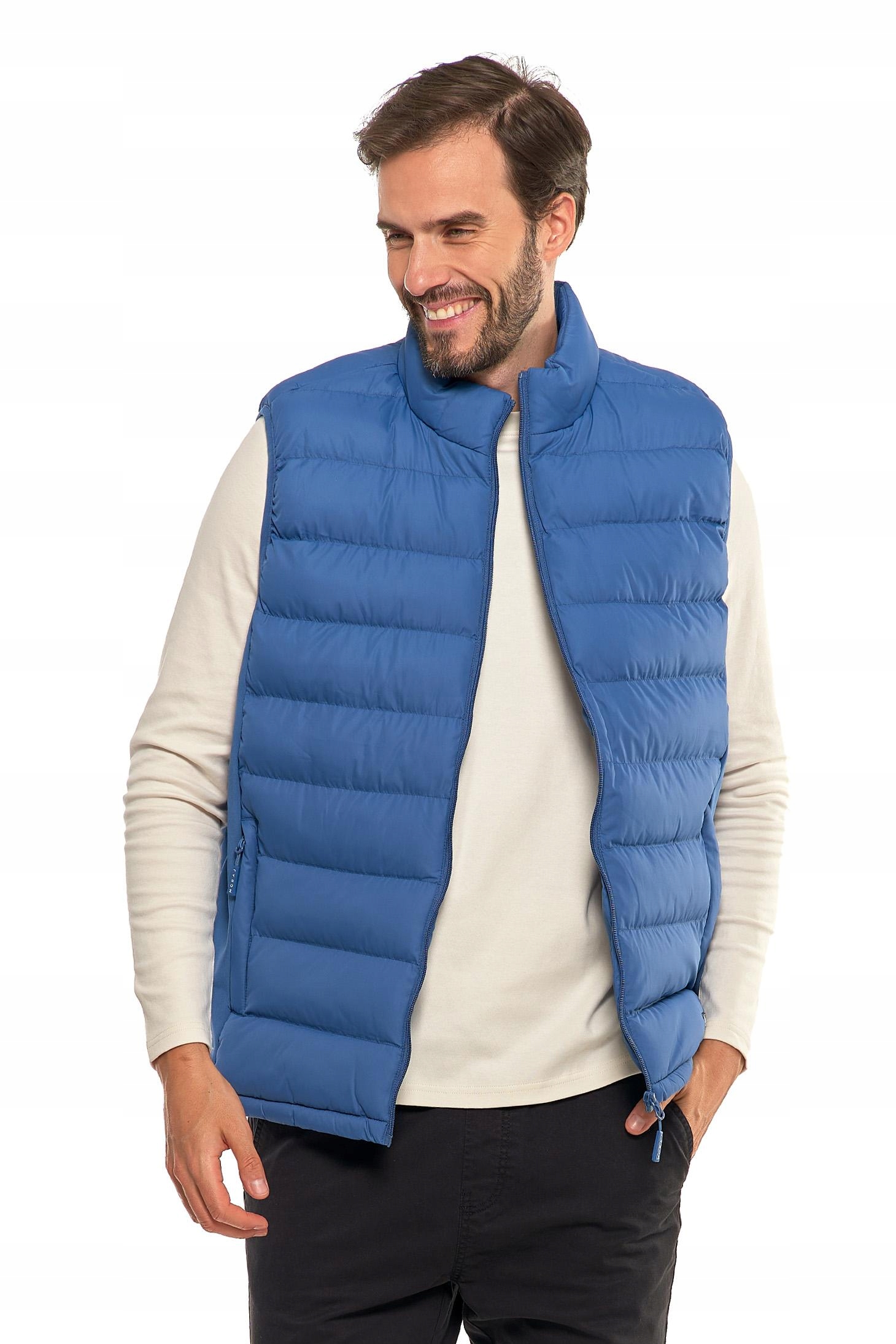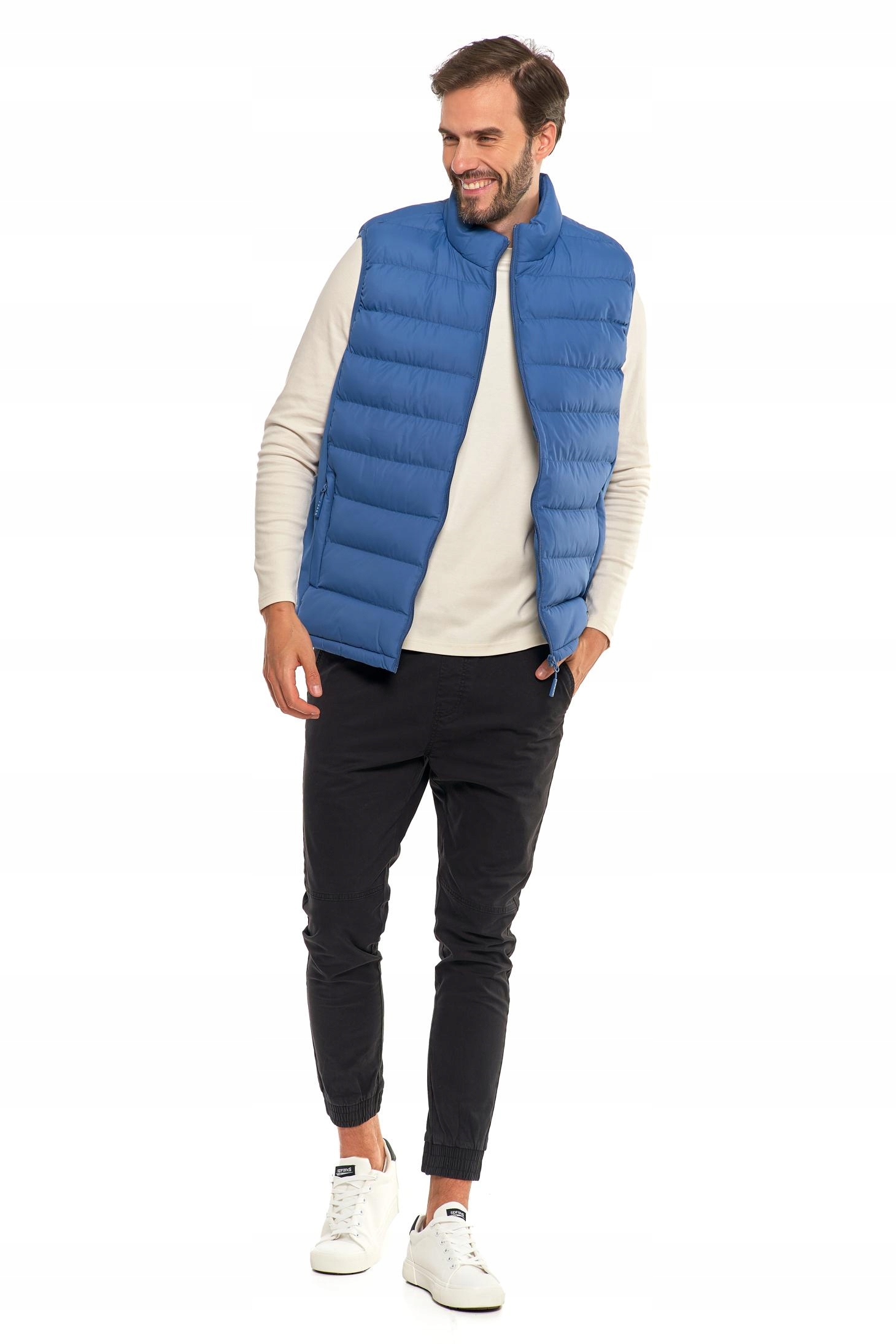 Męska pikowana kamizelka, która łączy funkcjonalność z nowoczesnym stylem. Ten bezrękawnik jest idealnym wyborem na chłodniejsze dni, kiedy potrzebujesz dodatkowej warstwy ochrony przed wiatrem.