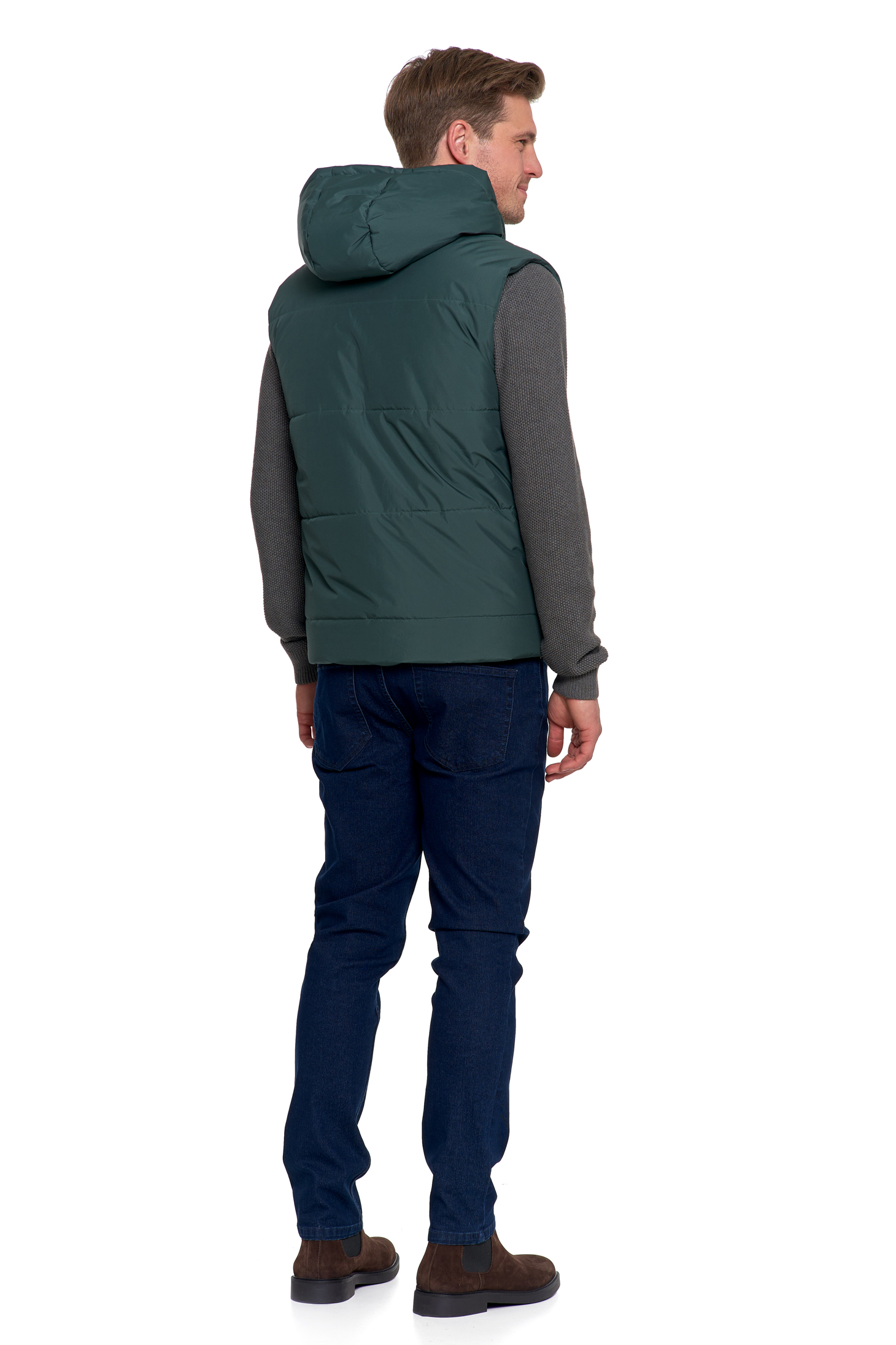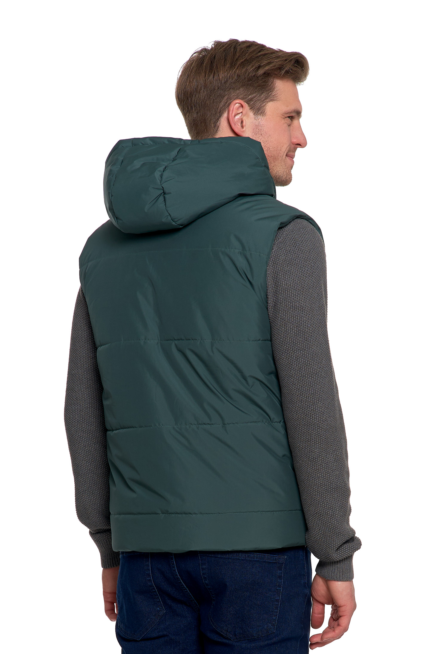 BEZRĘKAWNIK MĘSKI PIKOWANY KAMIZELKA Z KAPTUREM NA JESIEŃ CIEPŁA MORAJ