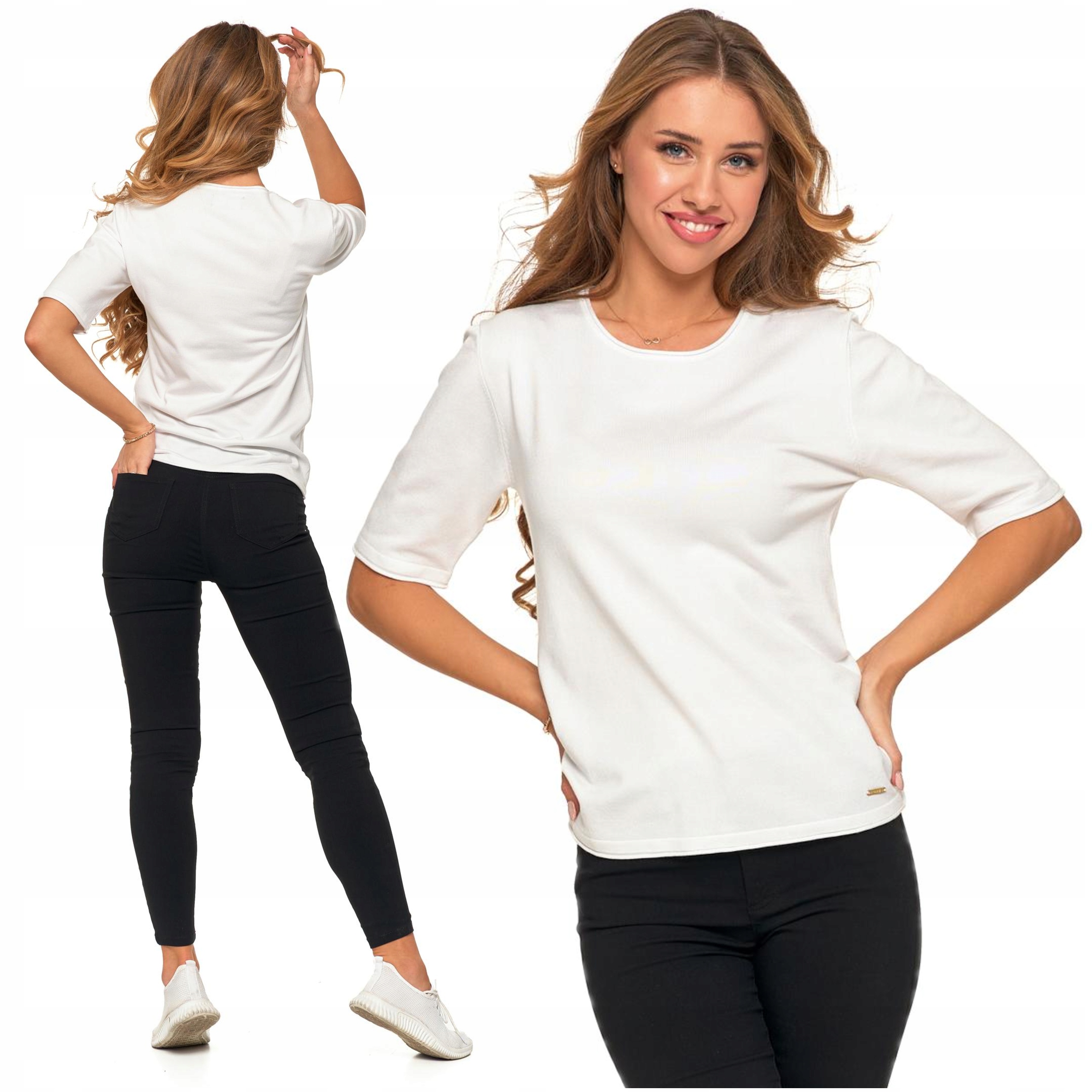 Biała Bluzka Damska Sweterkowa Okrągły Dekolt Wiskoza Modny MORAJ