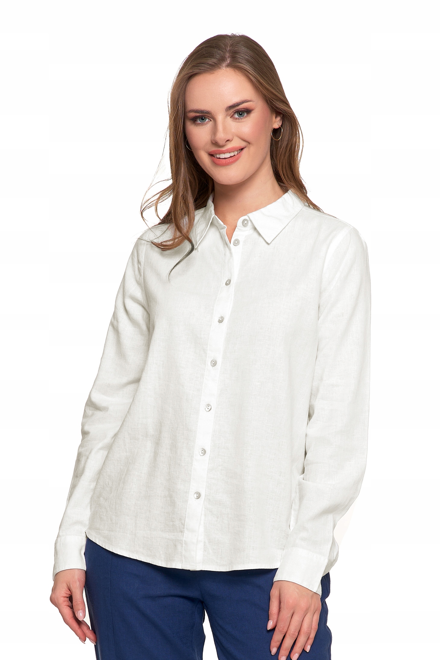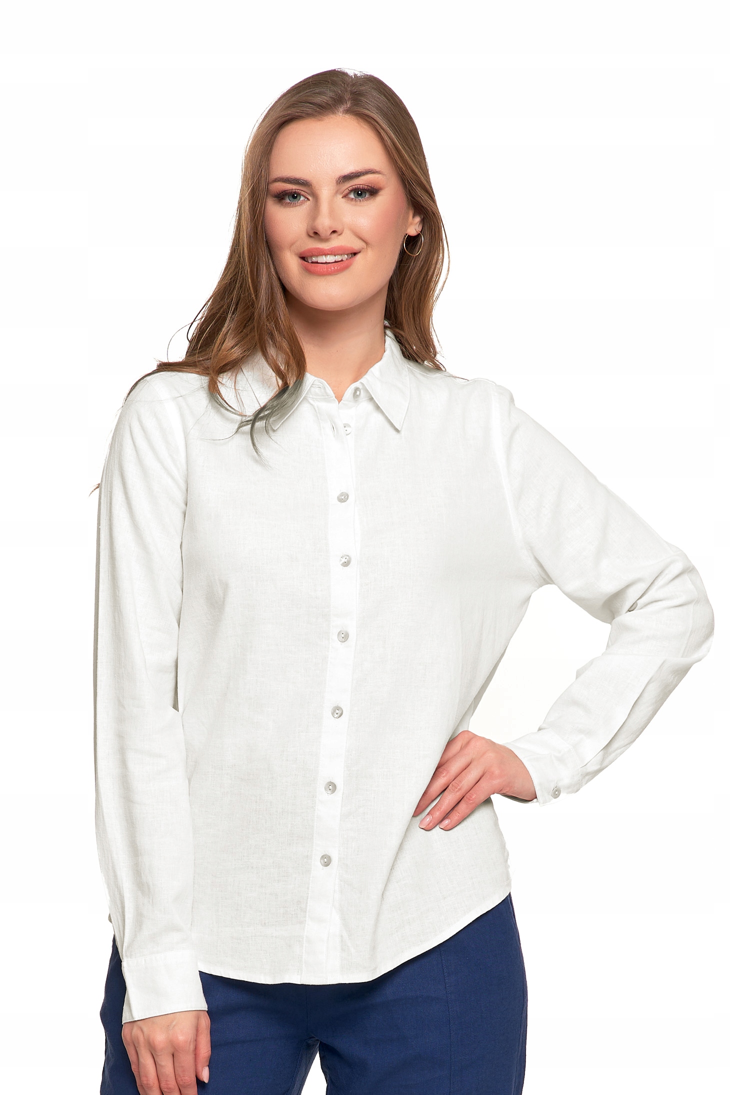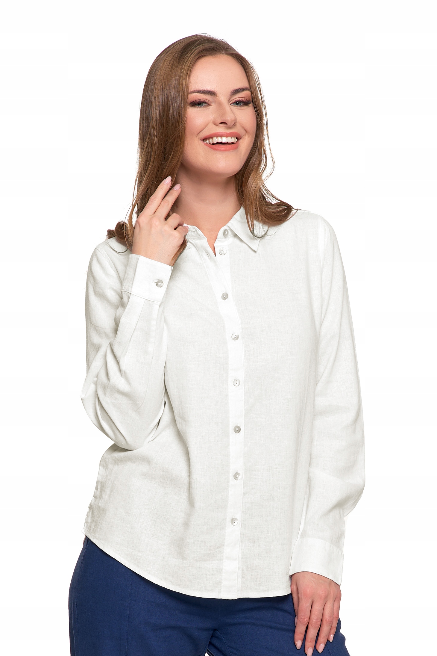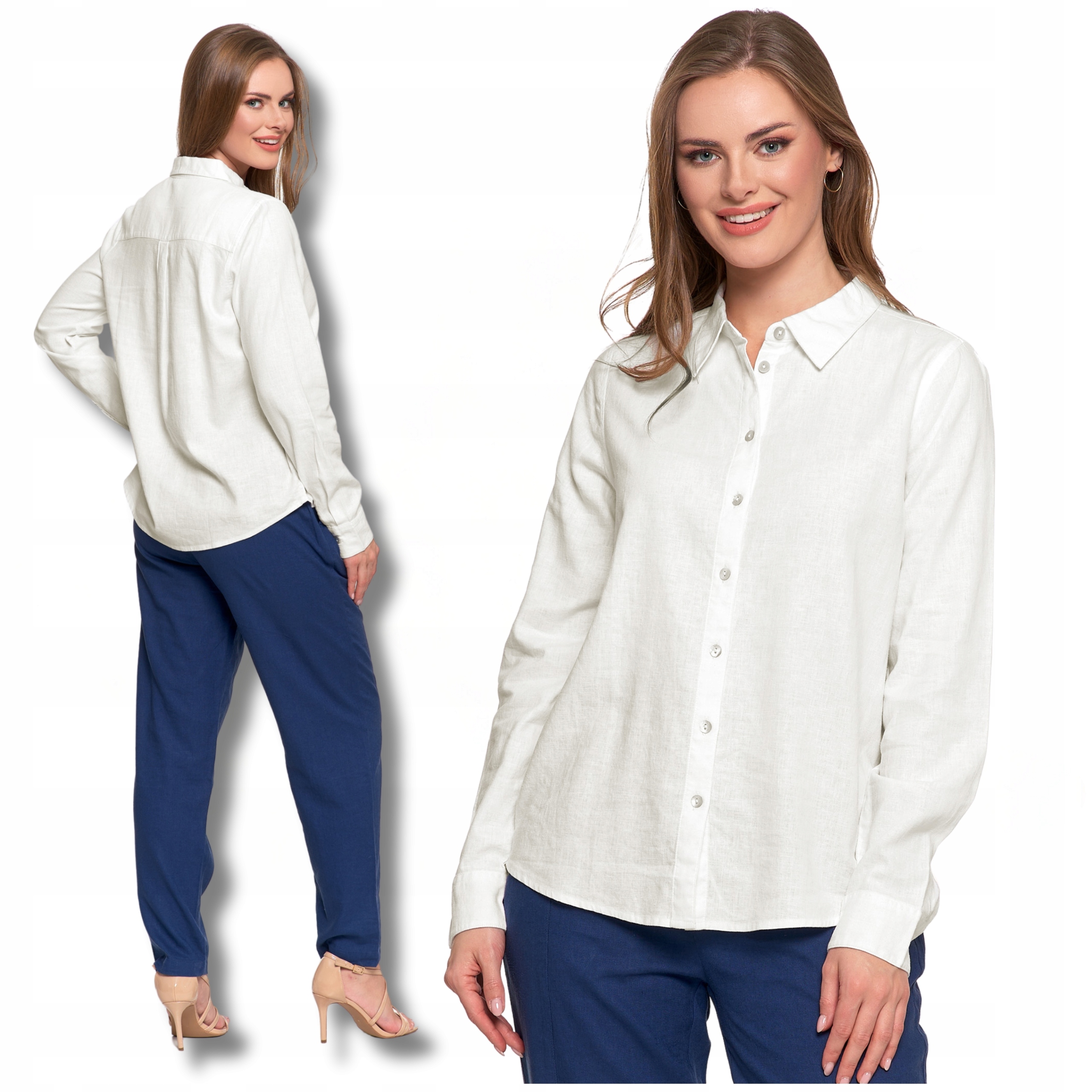 Biała Koszula Damska Lniana Rozpinana z Długim Rękawem Gładka MORAJ