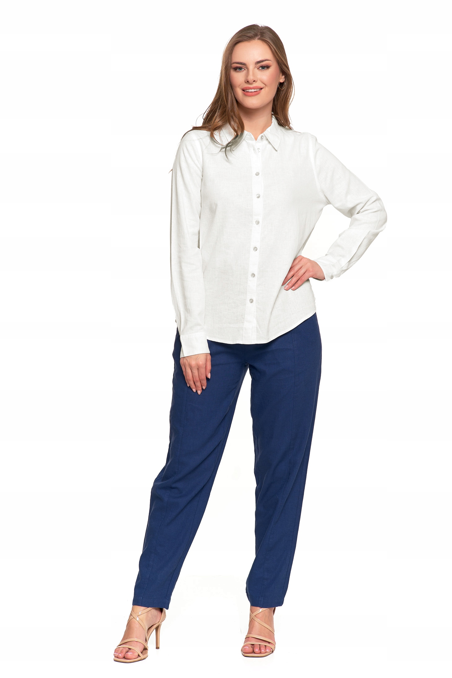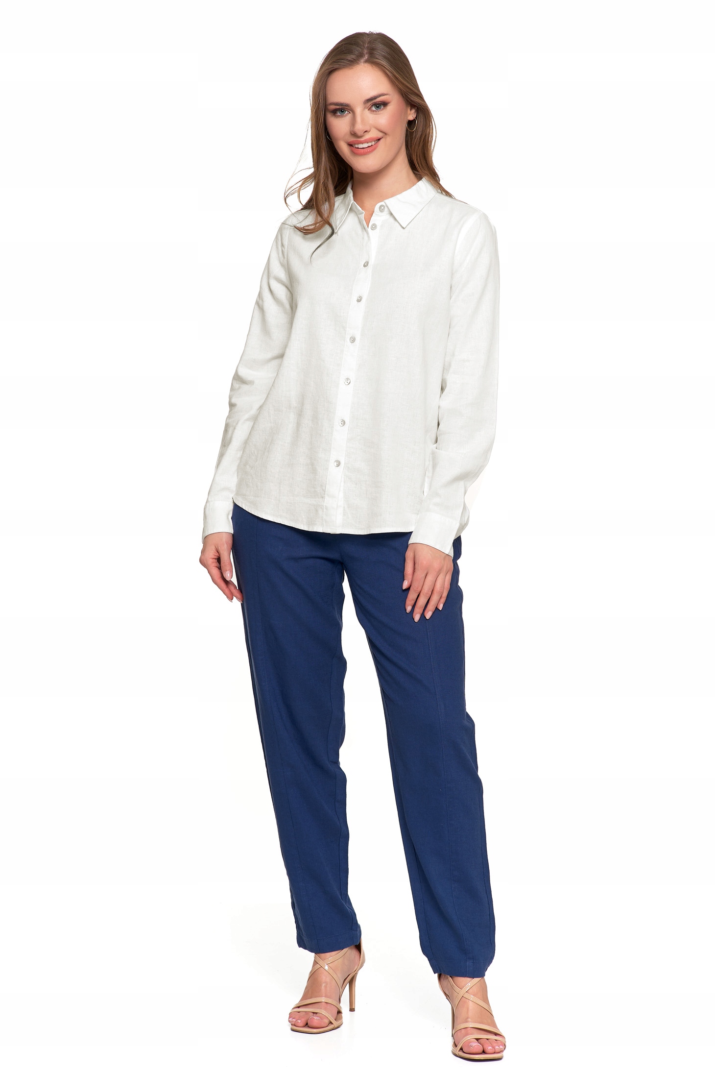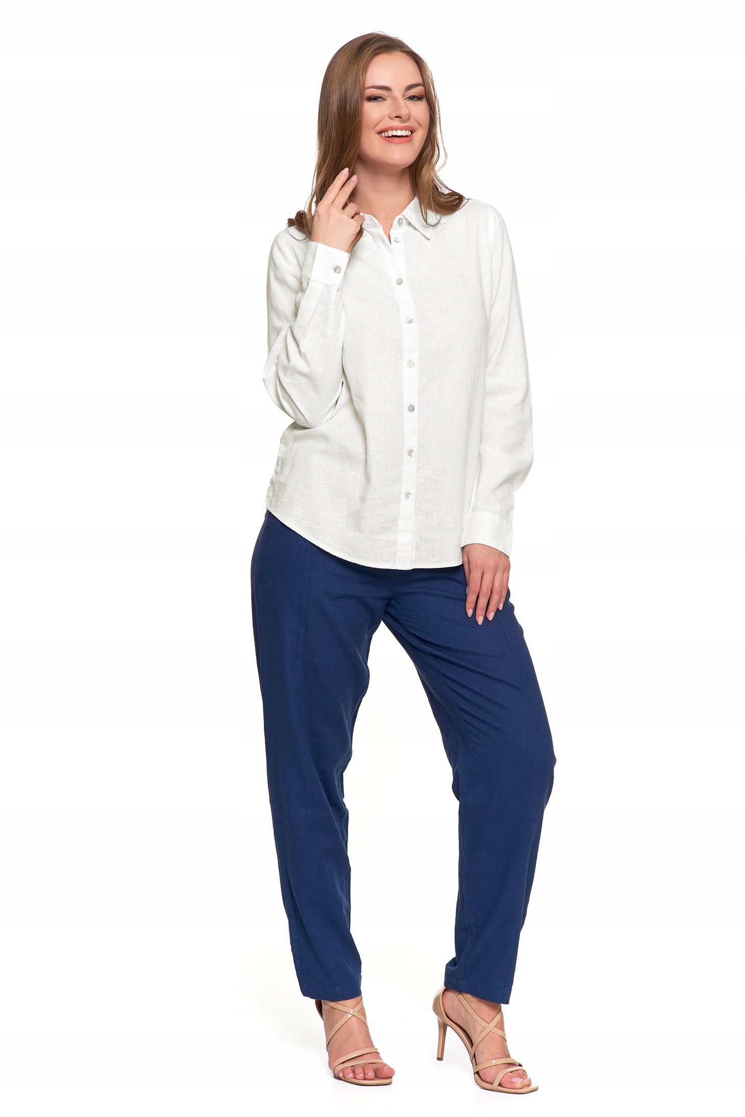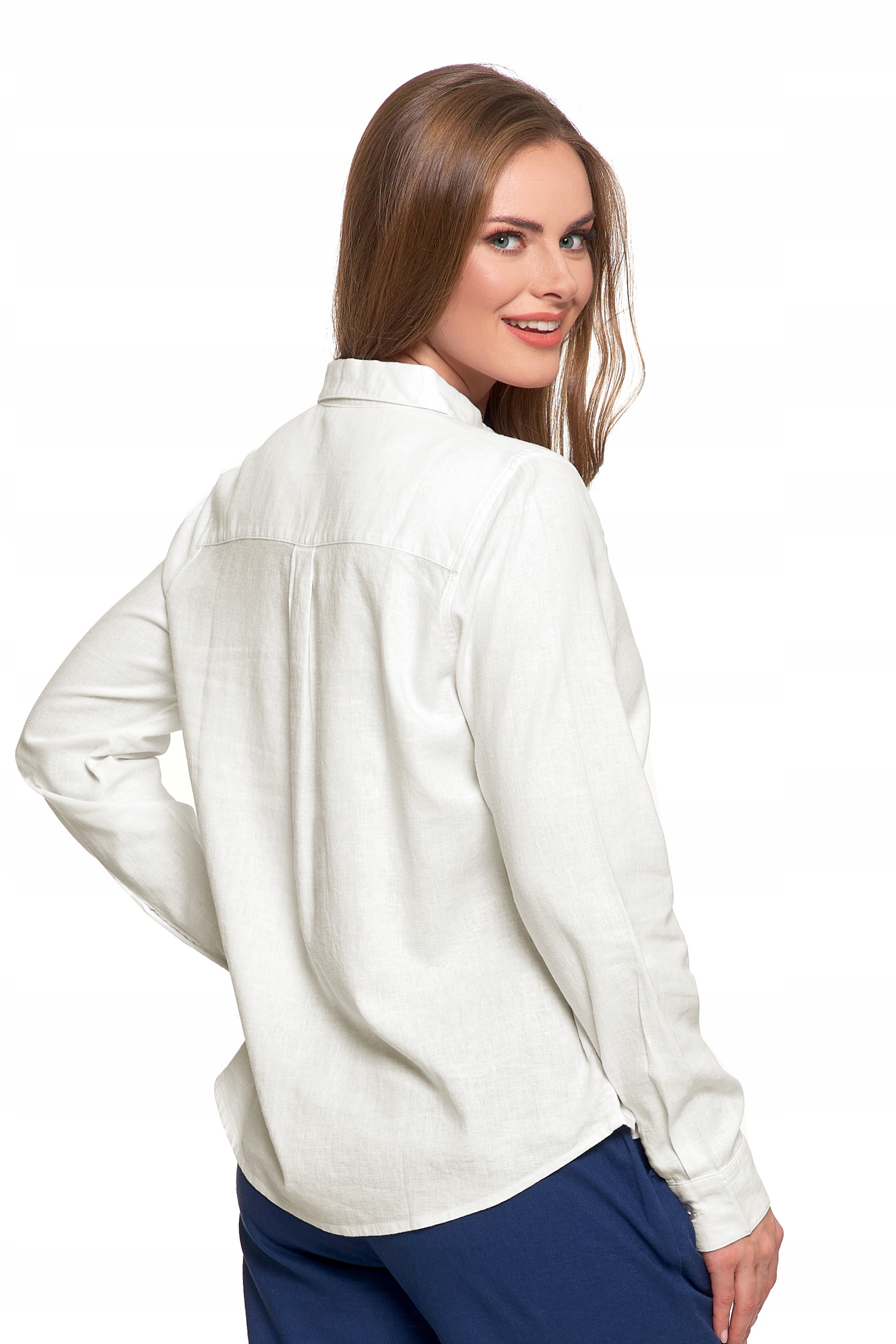 Biała Koszula Damska Lniana Rozpinana z Długim Rękawem Gładka MORAJ