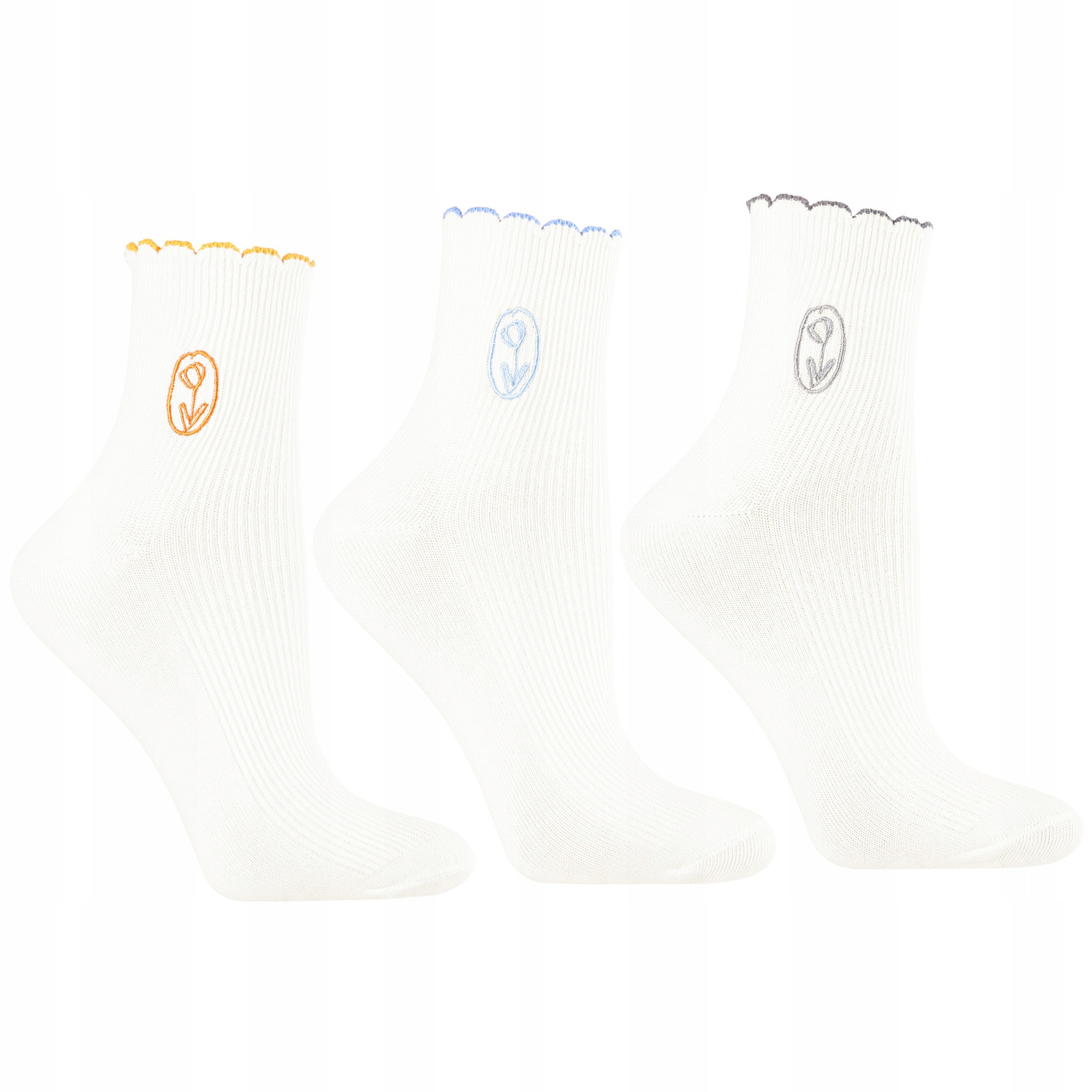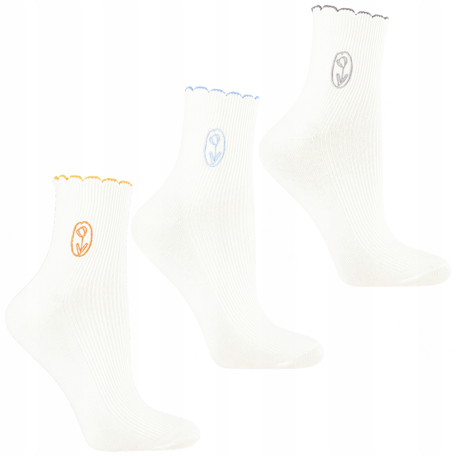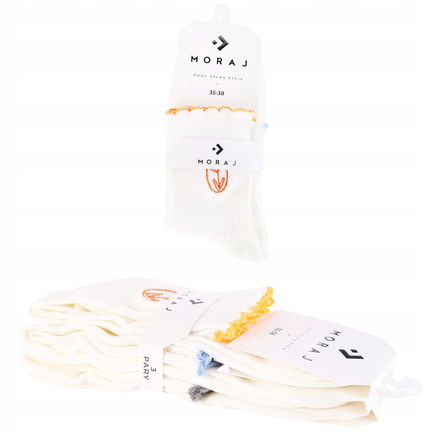 Białe Skarpetki Damskie Klasyczne Urocze Kwiatki Skarpety MORAJ 3-PAR