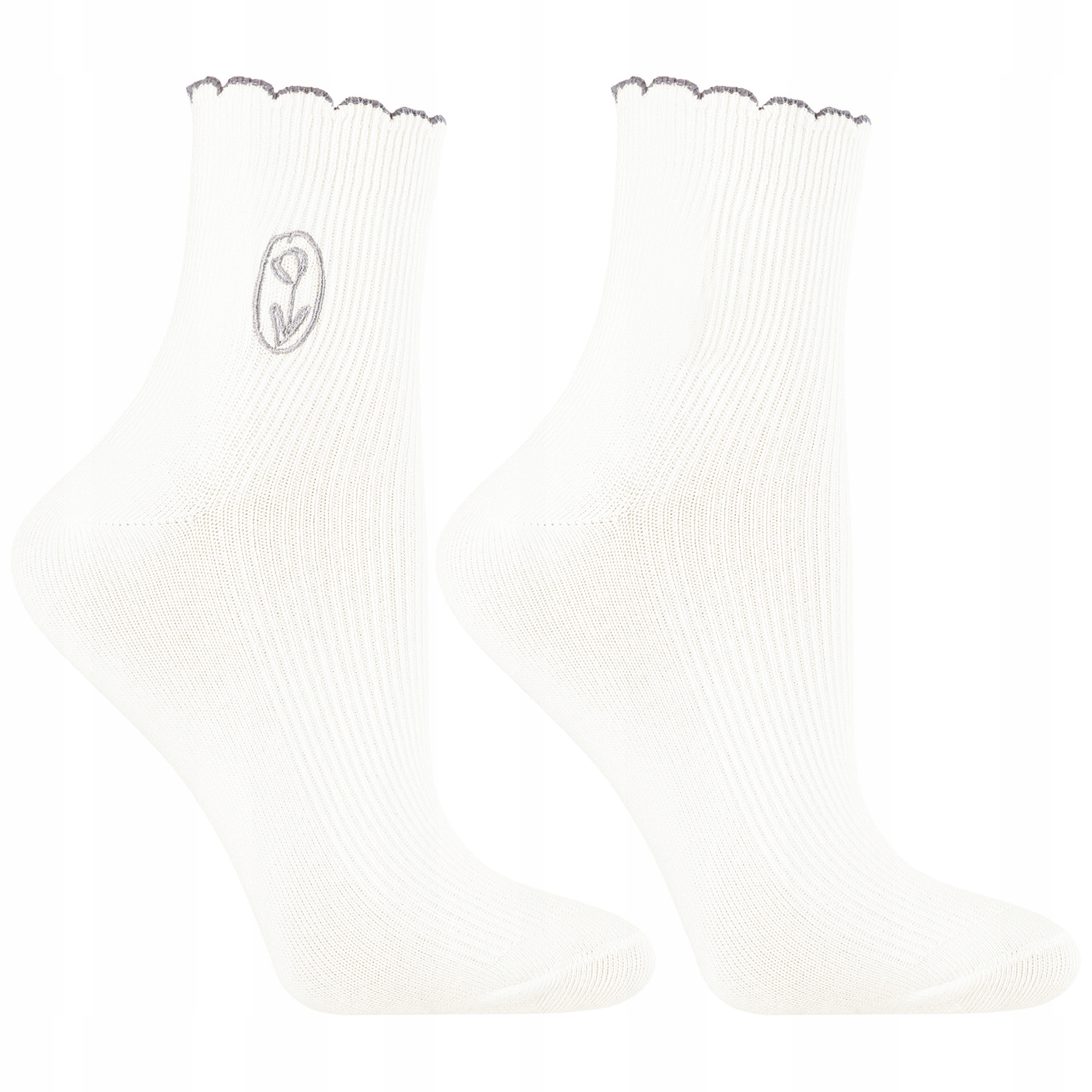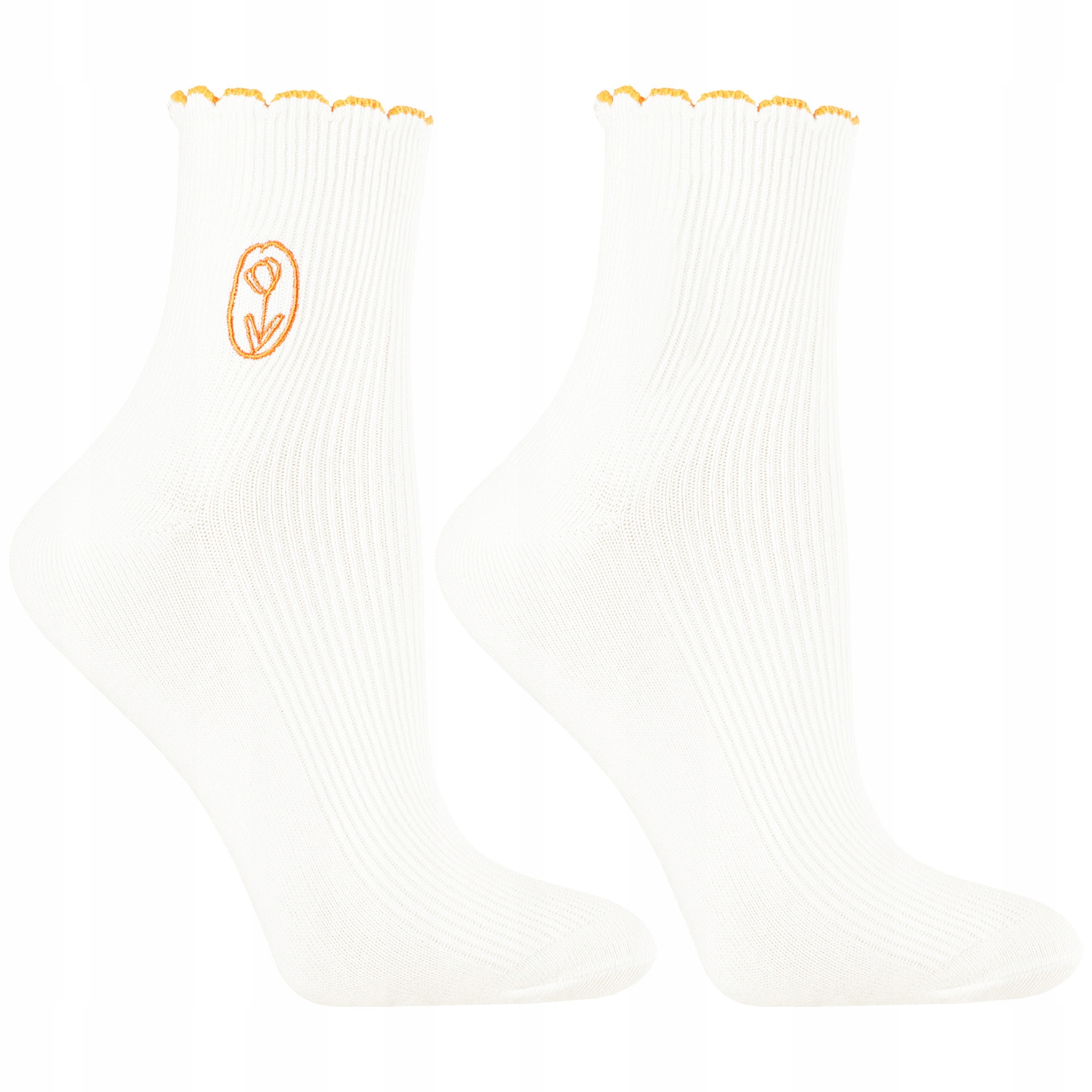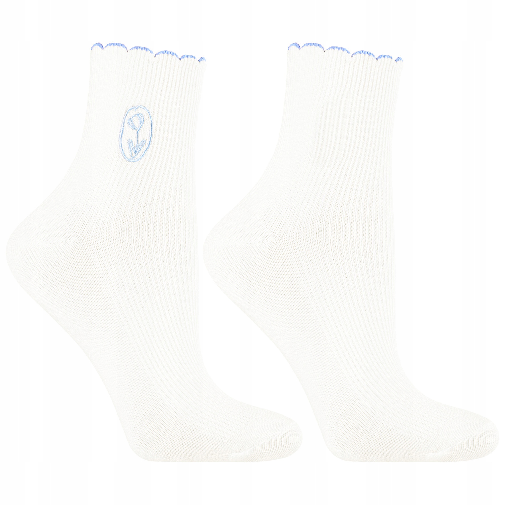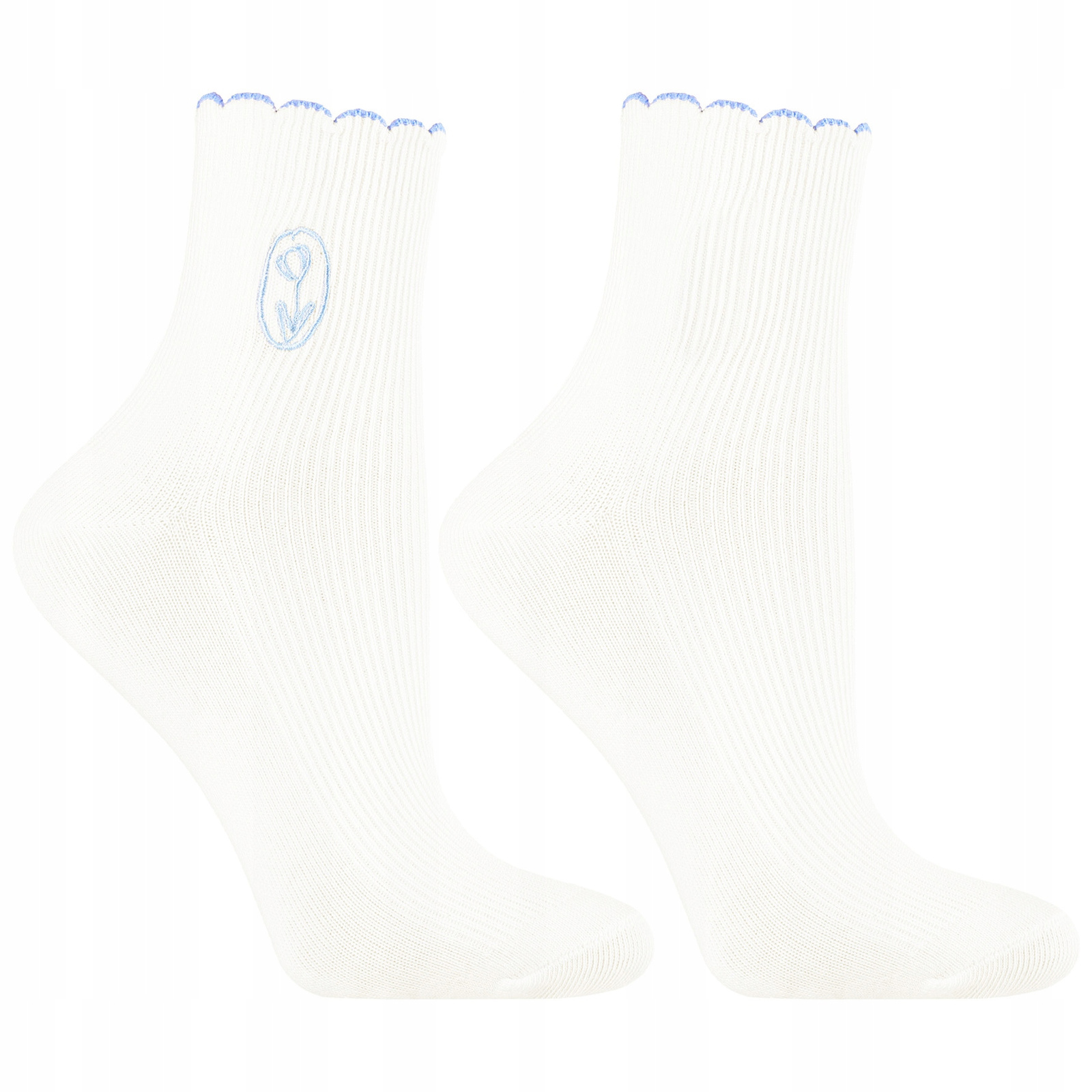 Białe Skarpetki Damskie Klasyczne Urocze Kwiatki Skarpety MORAJ 3-PAR