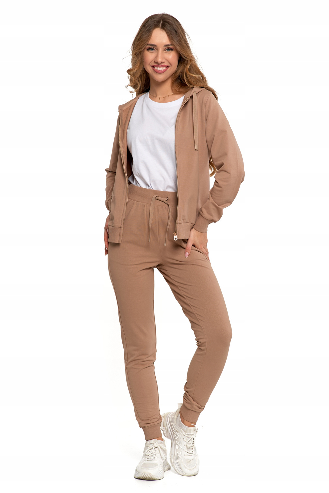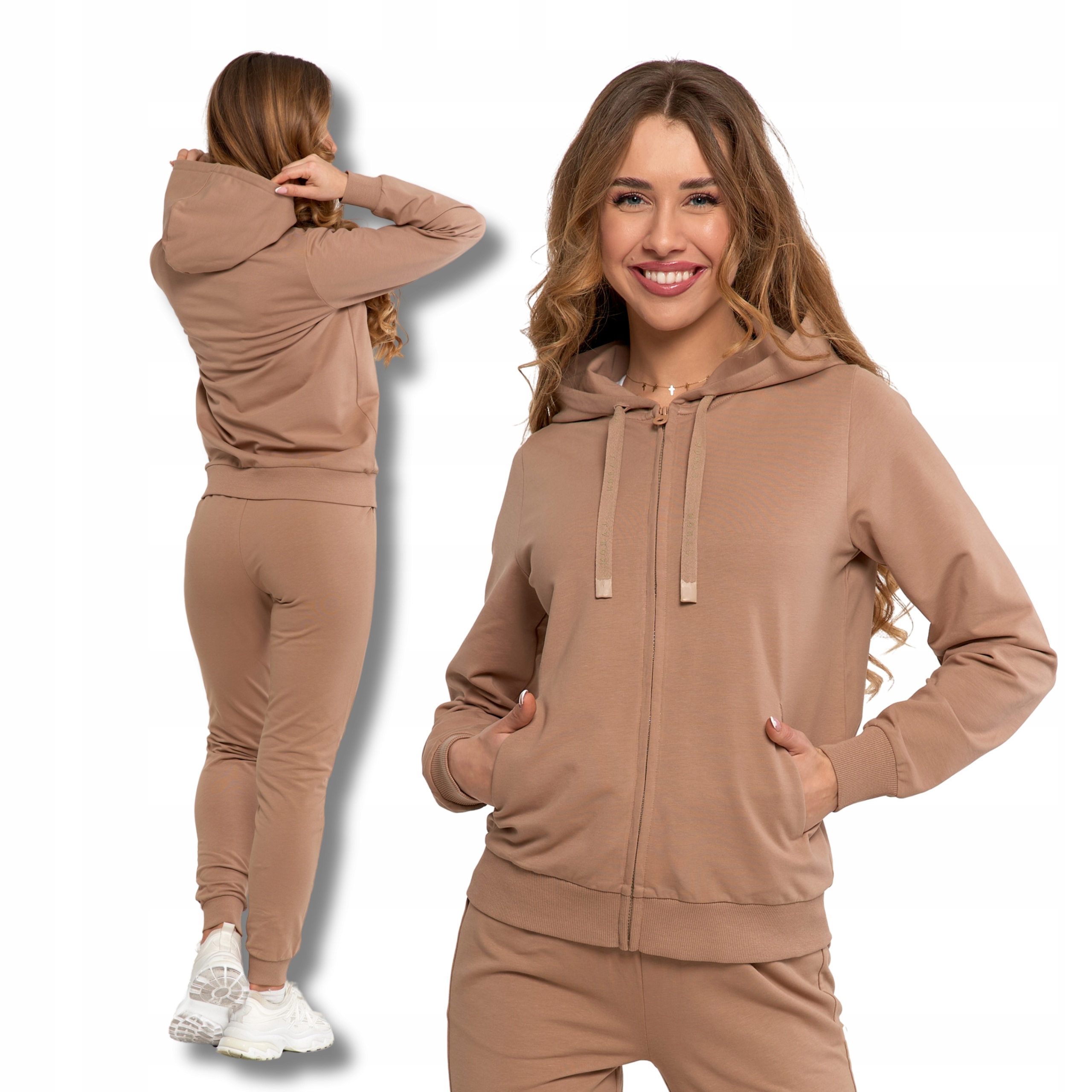 BLUZA DAMSKA Gładka Rozpinana Dresowa z Kapturem Klasyczna Beżowa MORAJ
