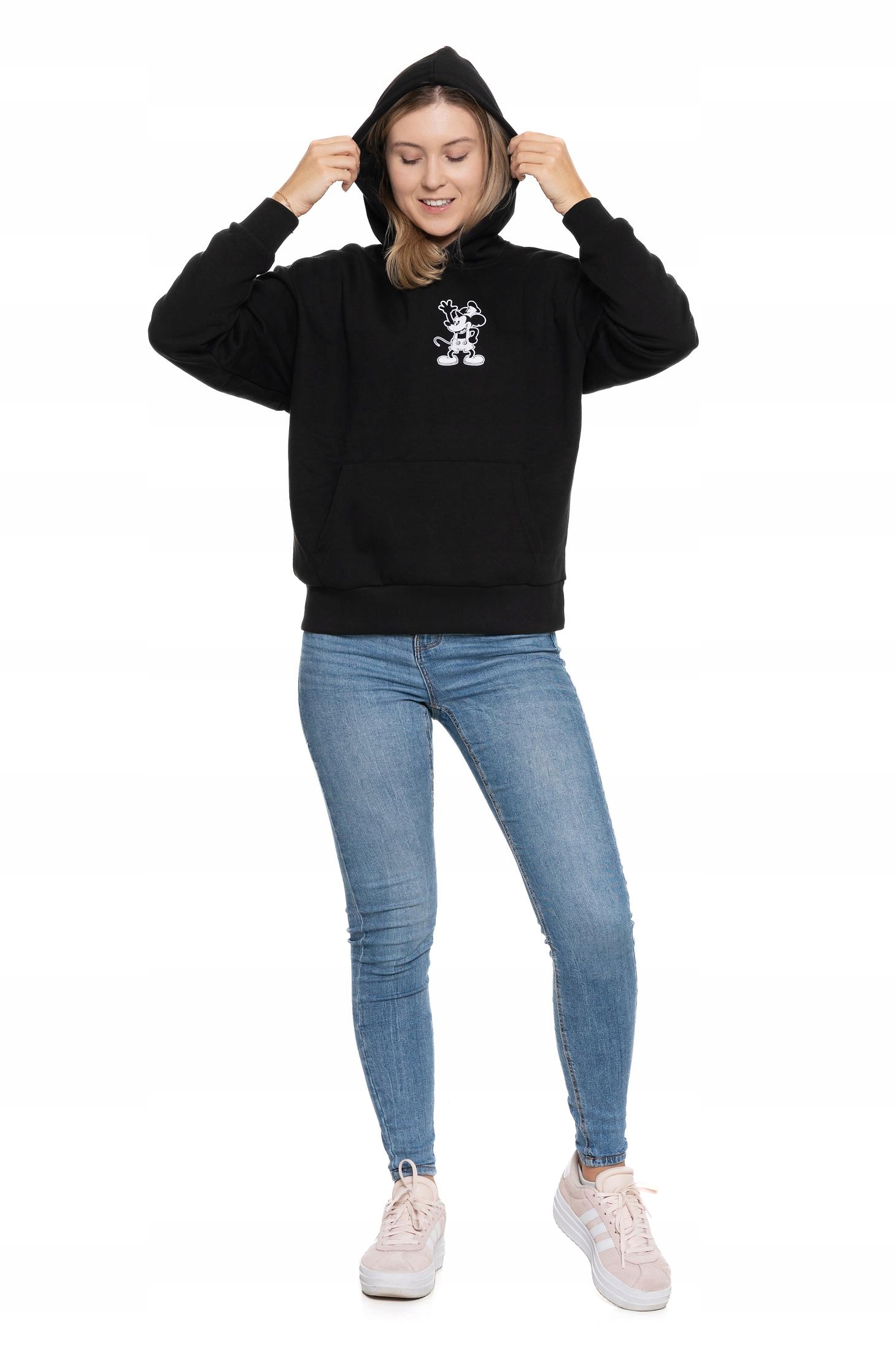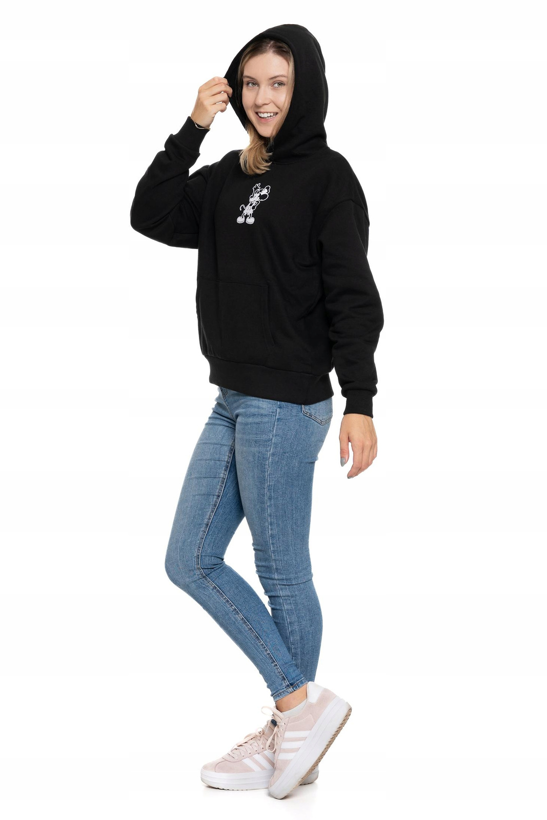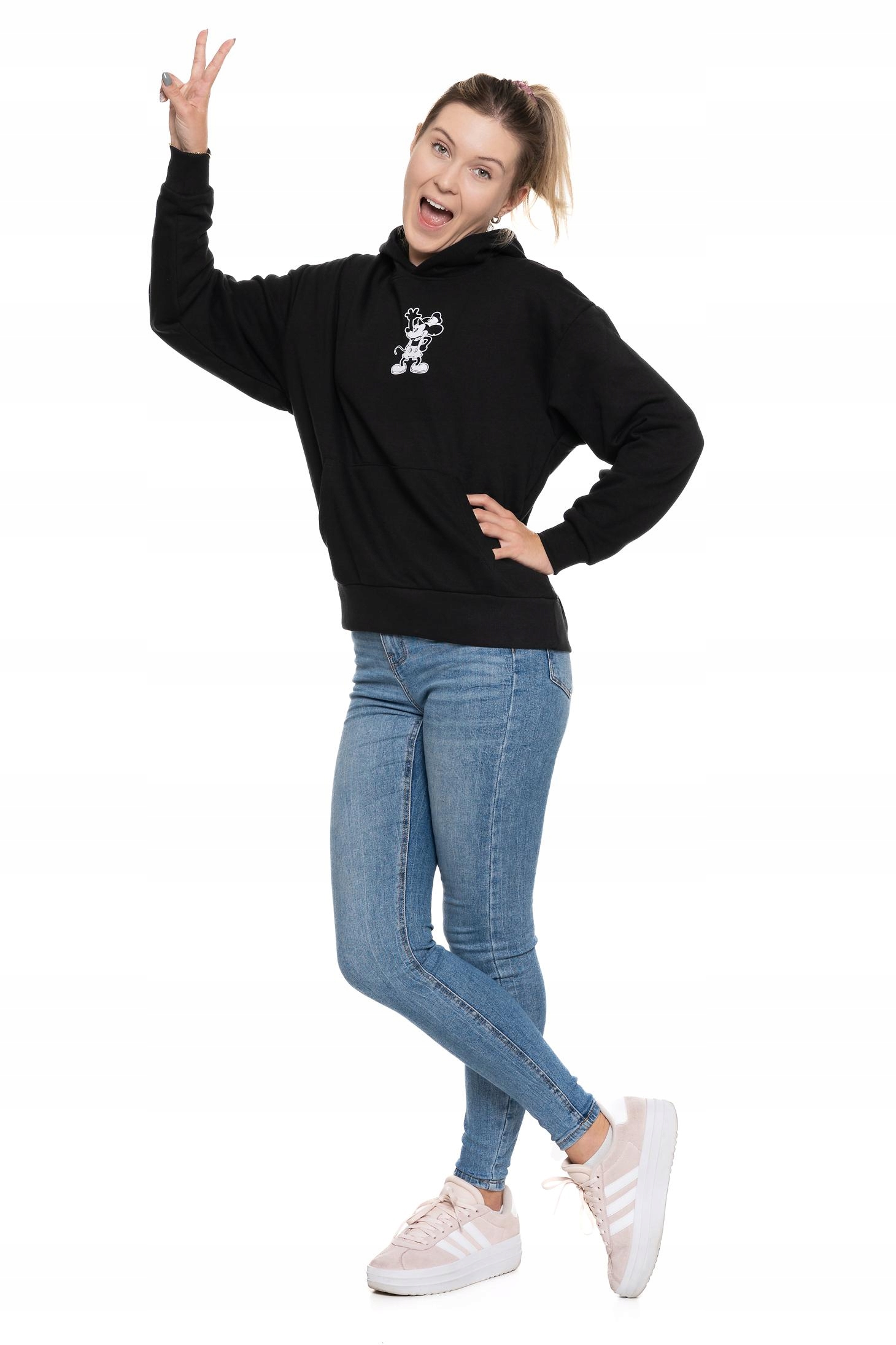 BLUZA DAMSKA Z Myszką Ciepła z Kapturem Wygodna Modna Czarna MORAJ