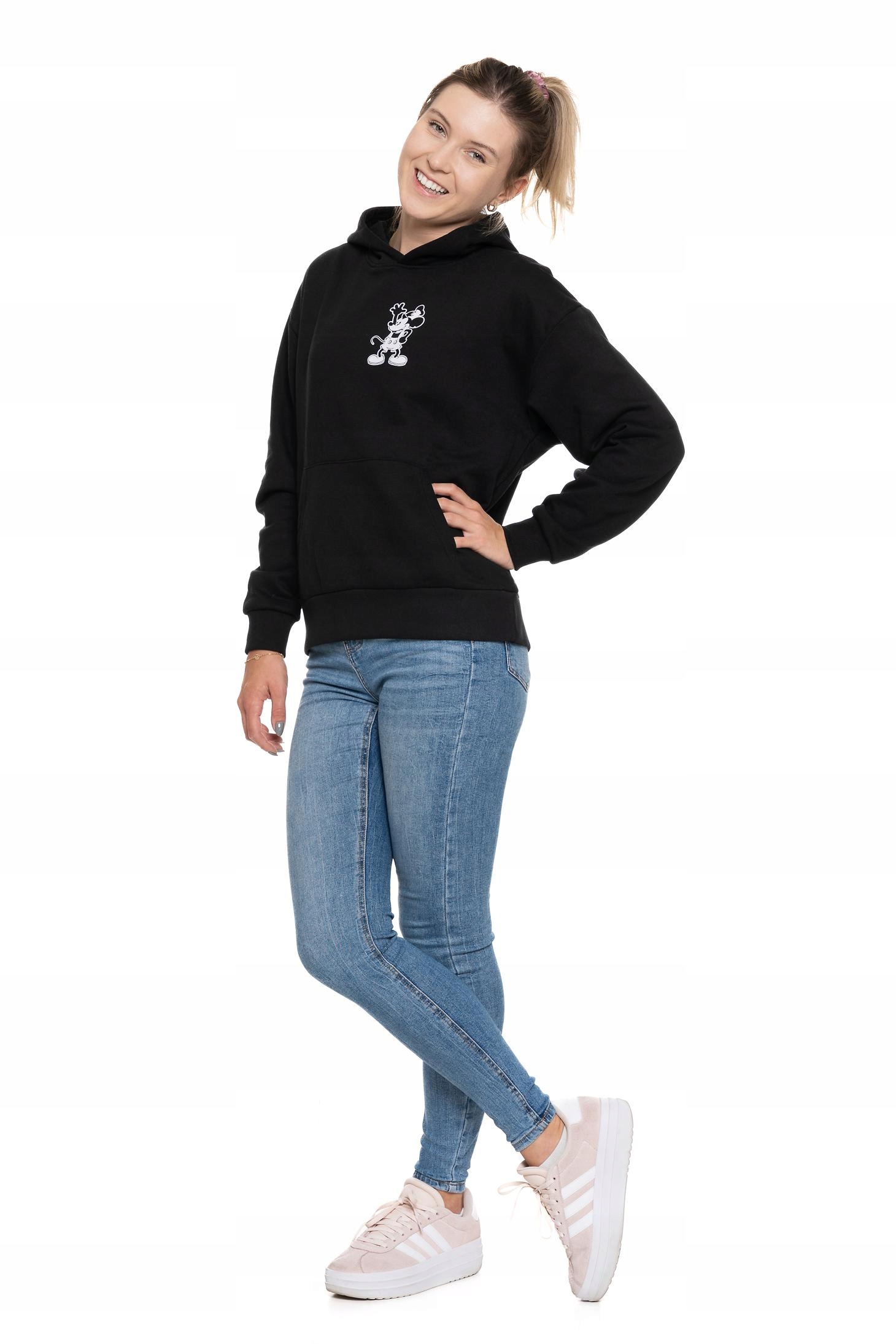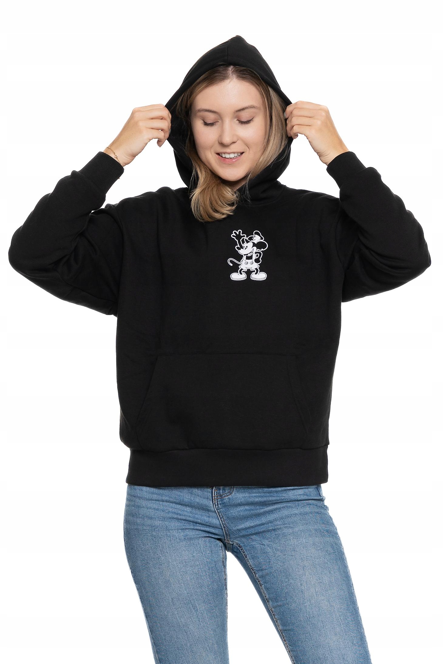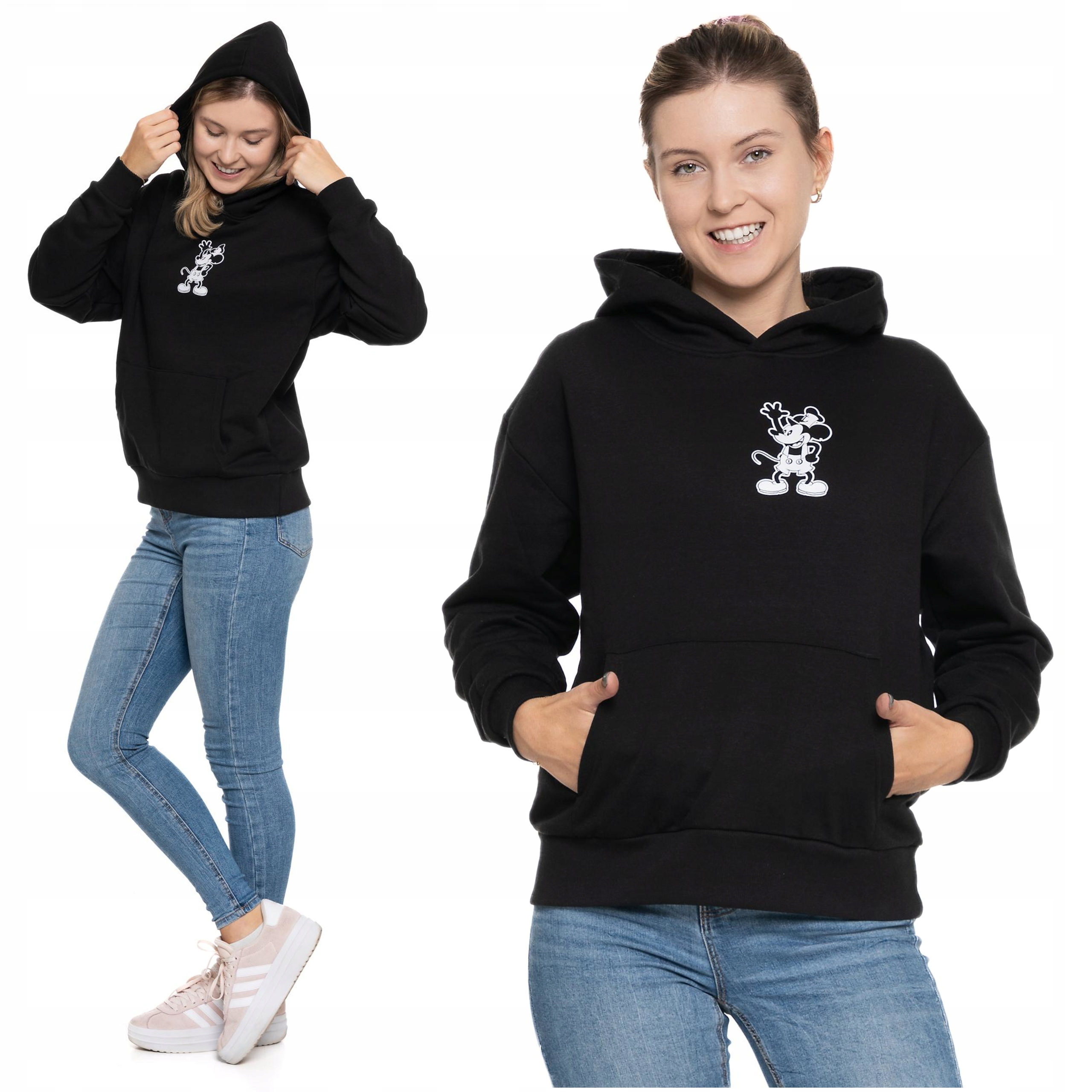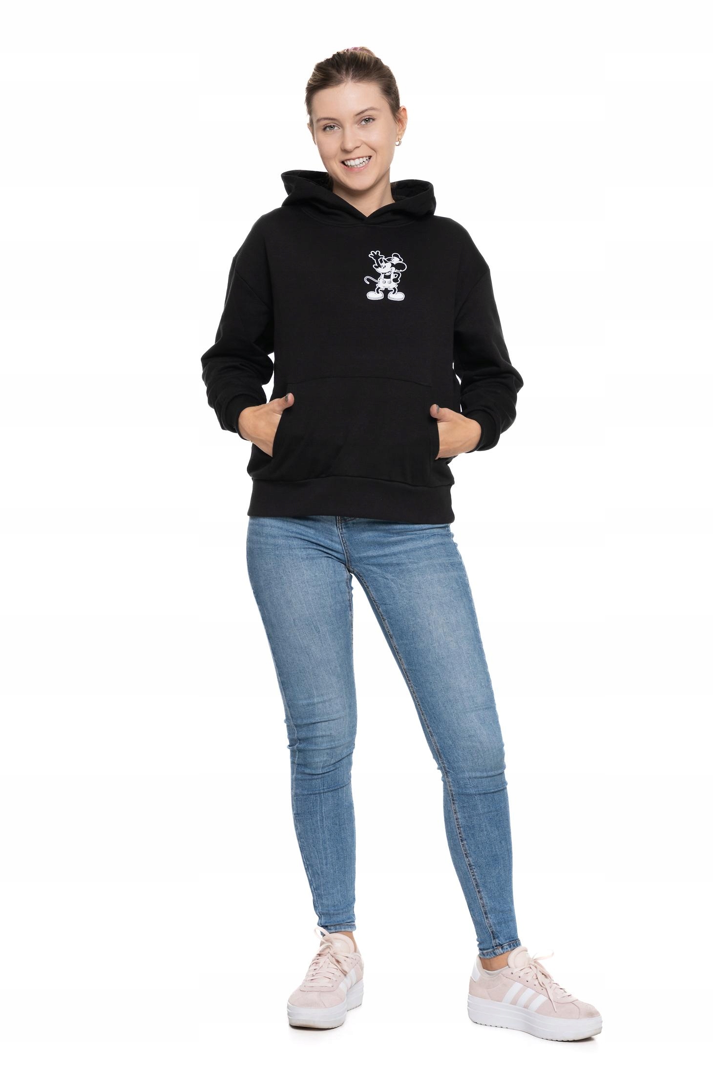BLUZA DAMSKA Z Myszką Ciepła z Kapturem Wygodna Modna Czarna MORAJ