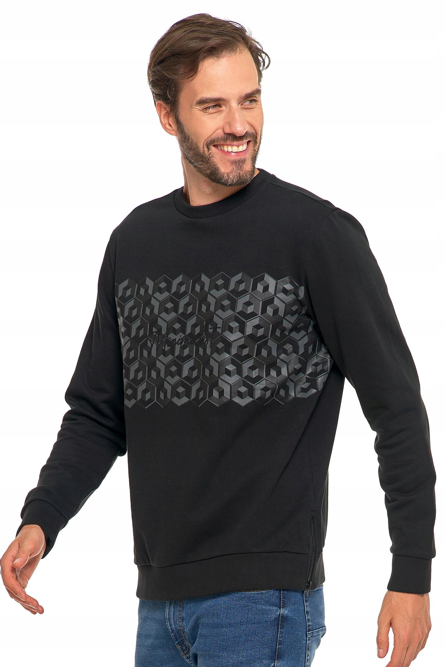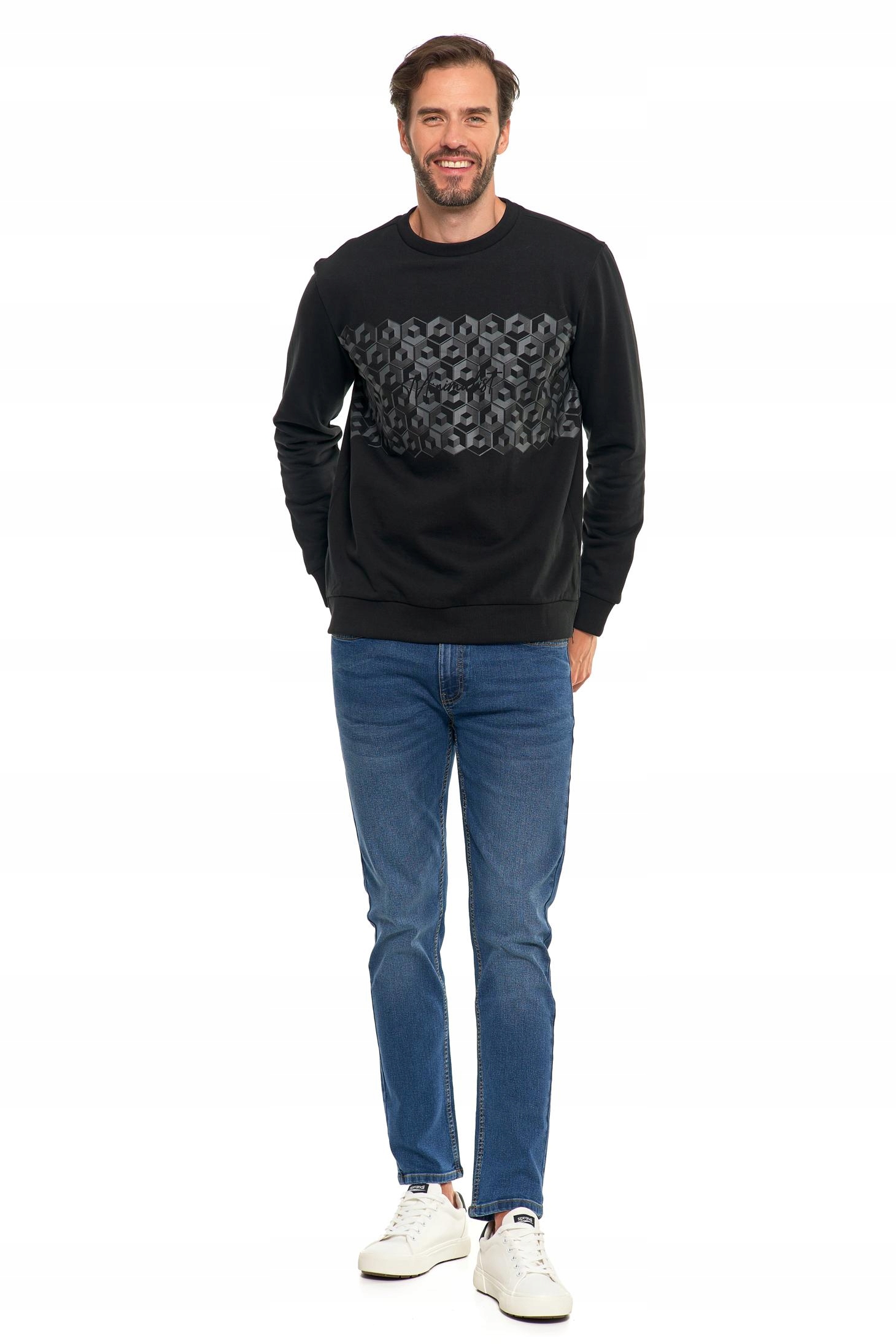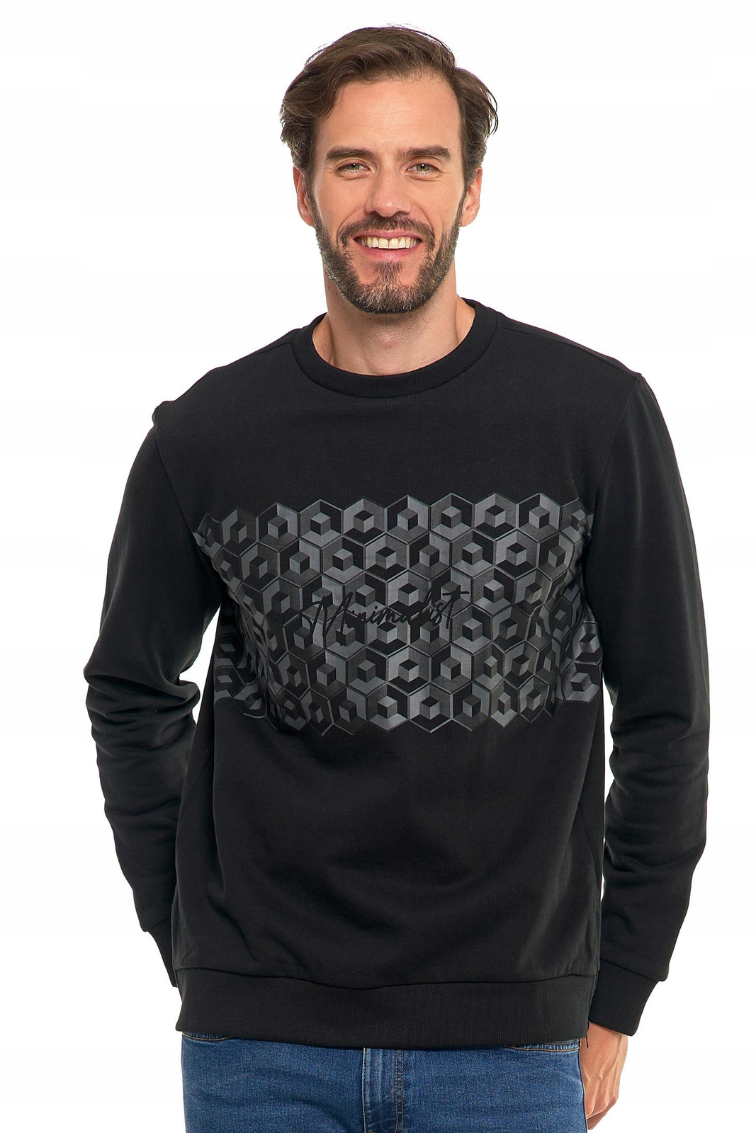 BLUZA MĘSKA Bez Kaptura Klasyczna Czarna z Nadrukiem Przez Głowę MORAJ