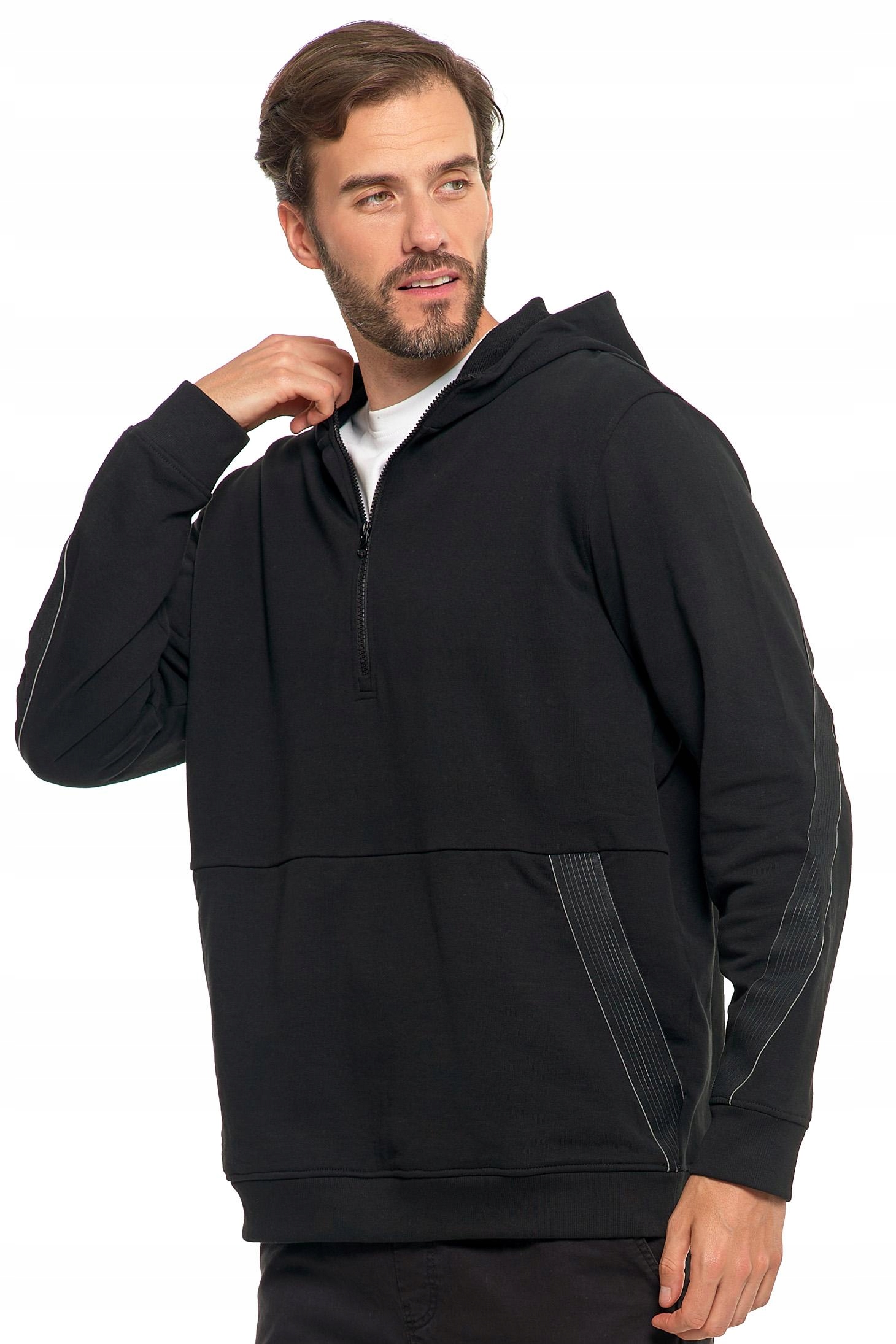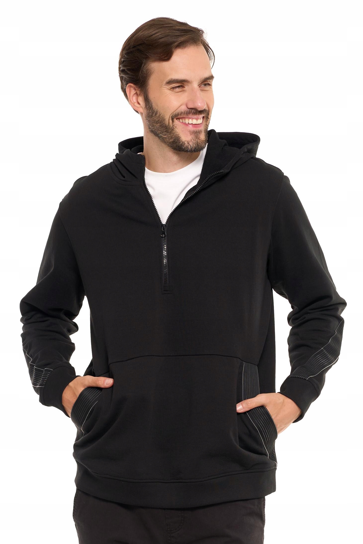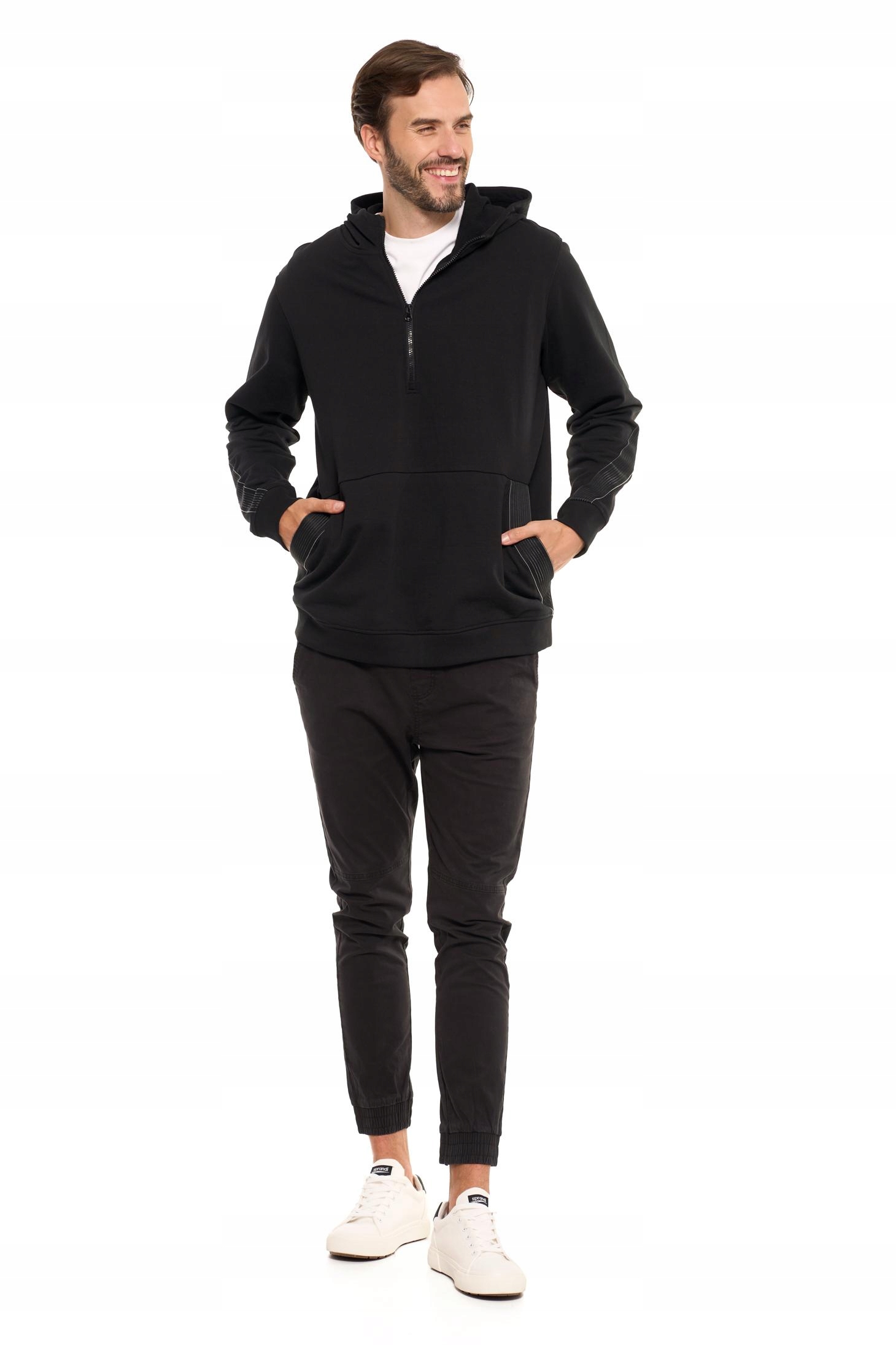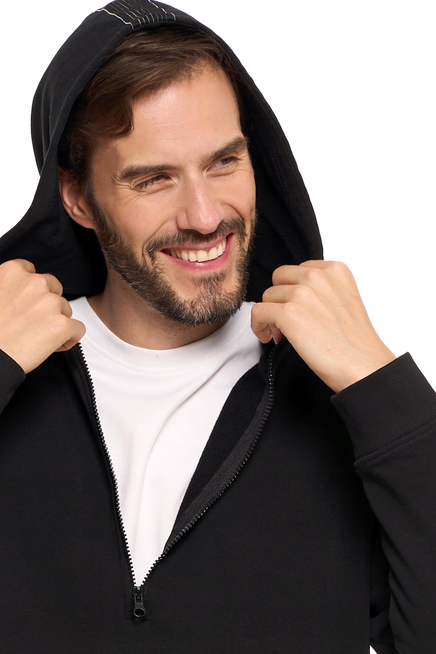 BLUZA MĘSKA Rozpinana do połowy z Kapturem Czarna Bawełniana MORAJ