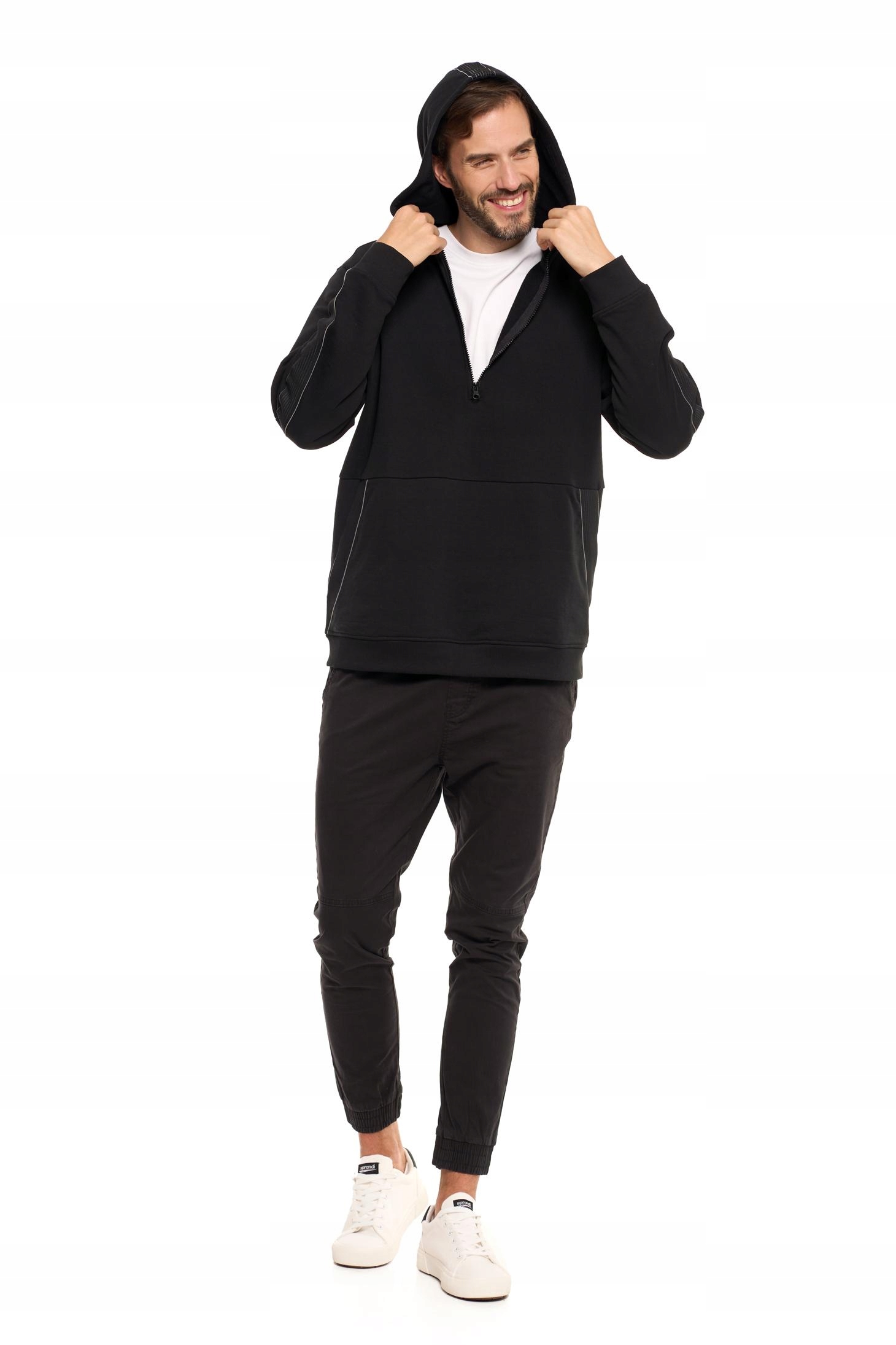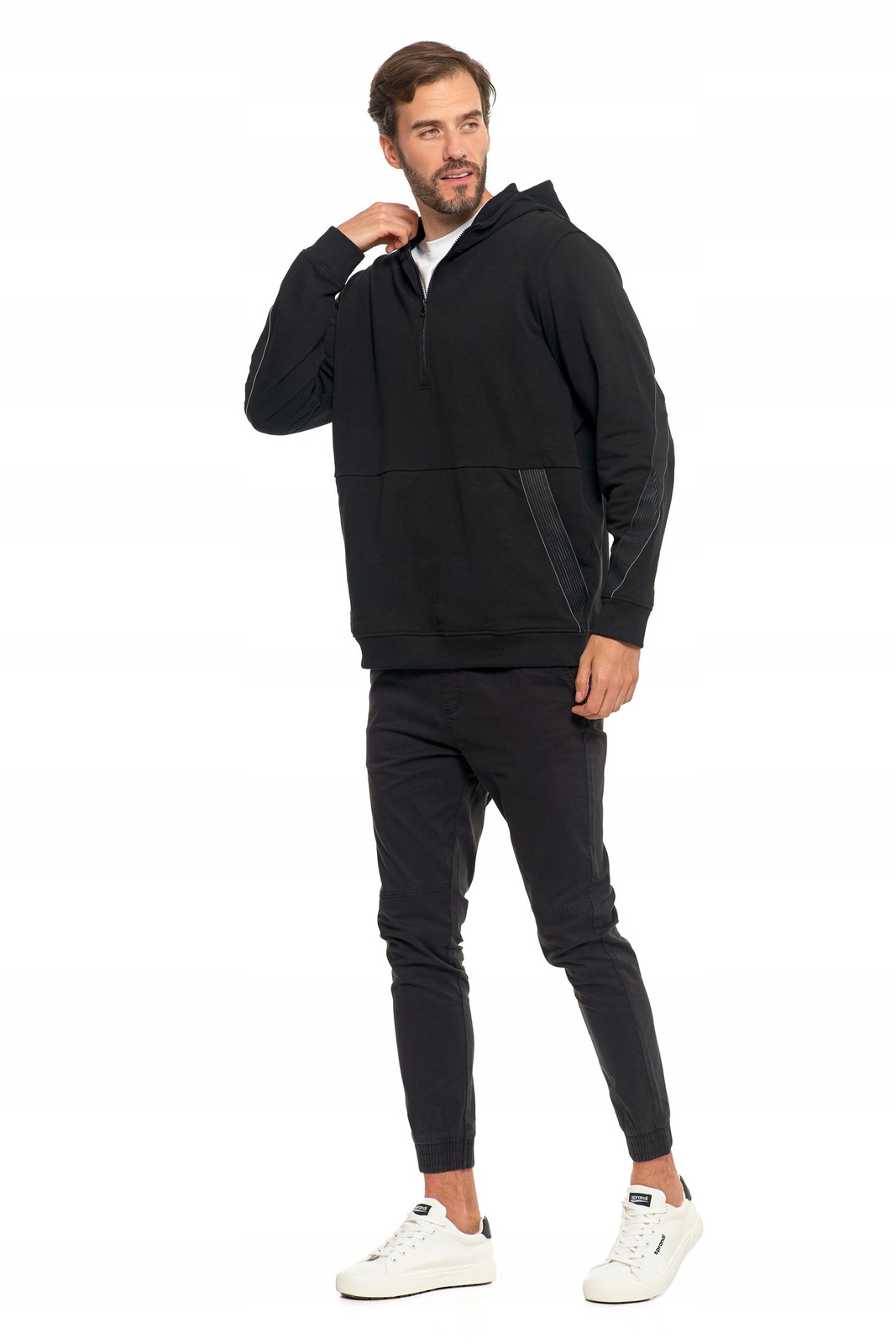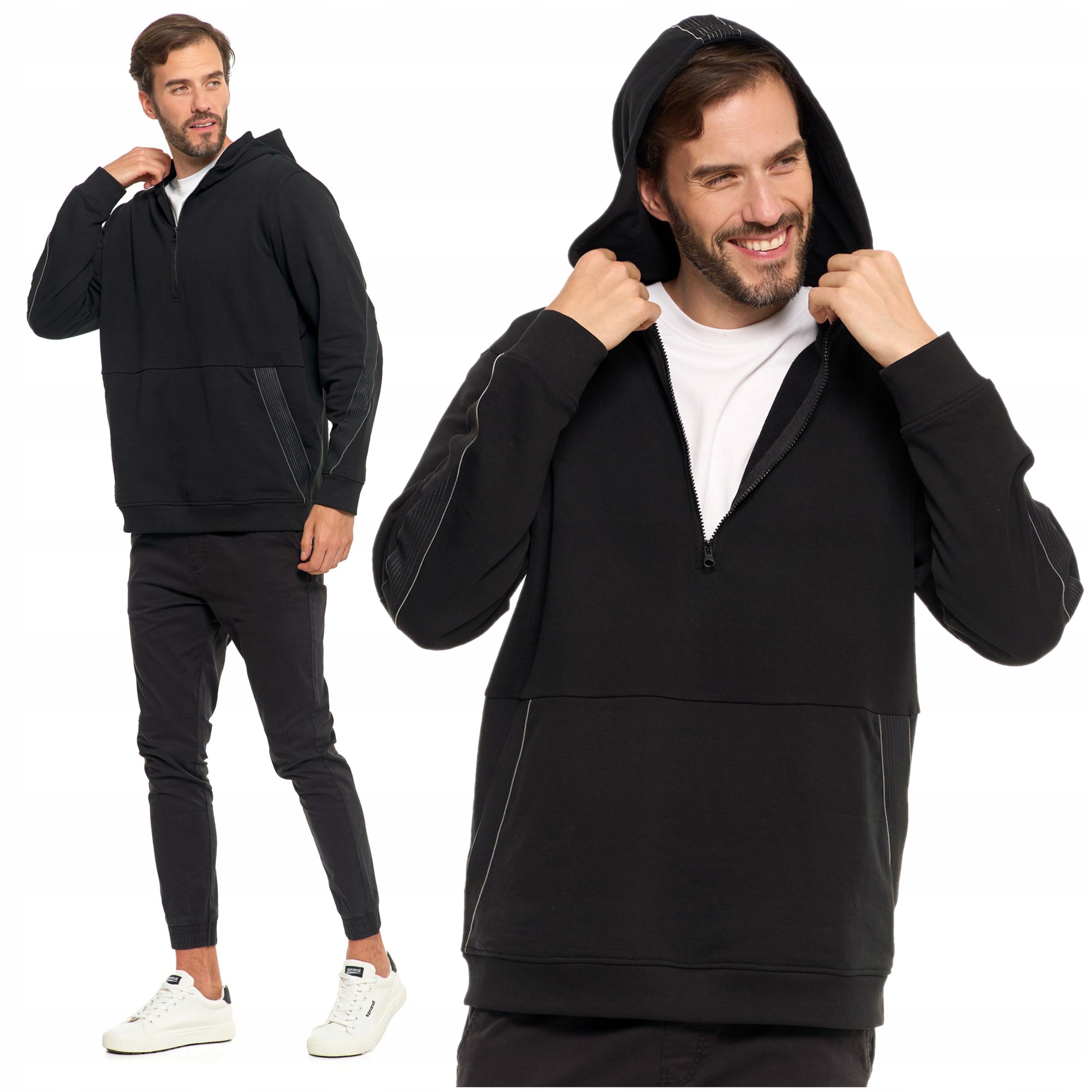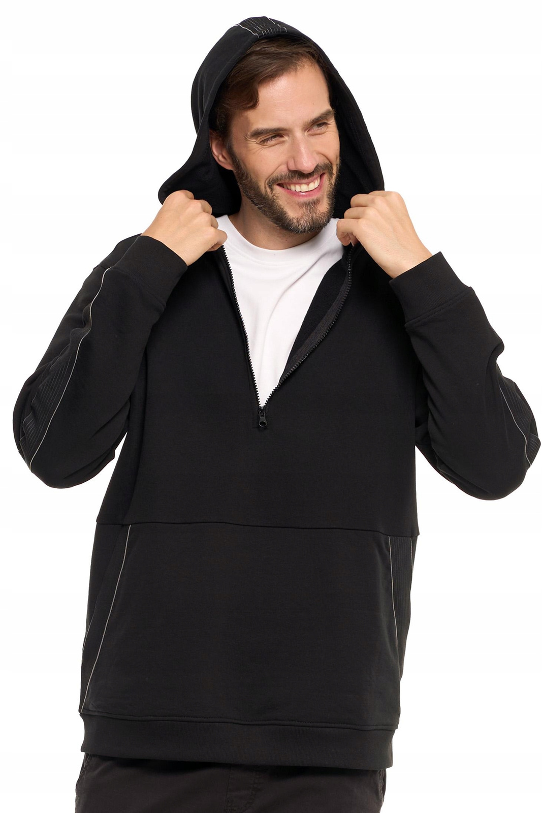 BLUZA MĘSKA Rozpinana do połowy z Kapturem Czarna Bawełniana MORAJ