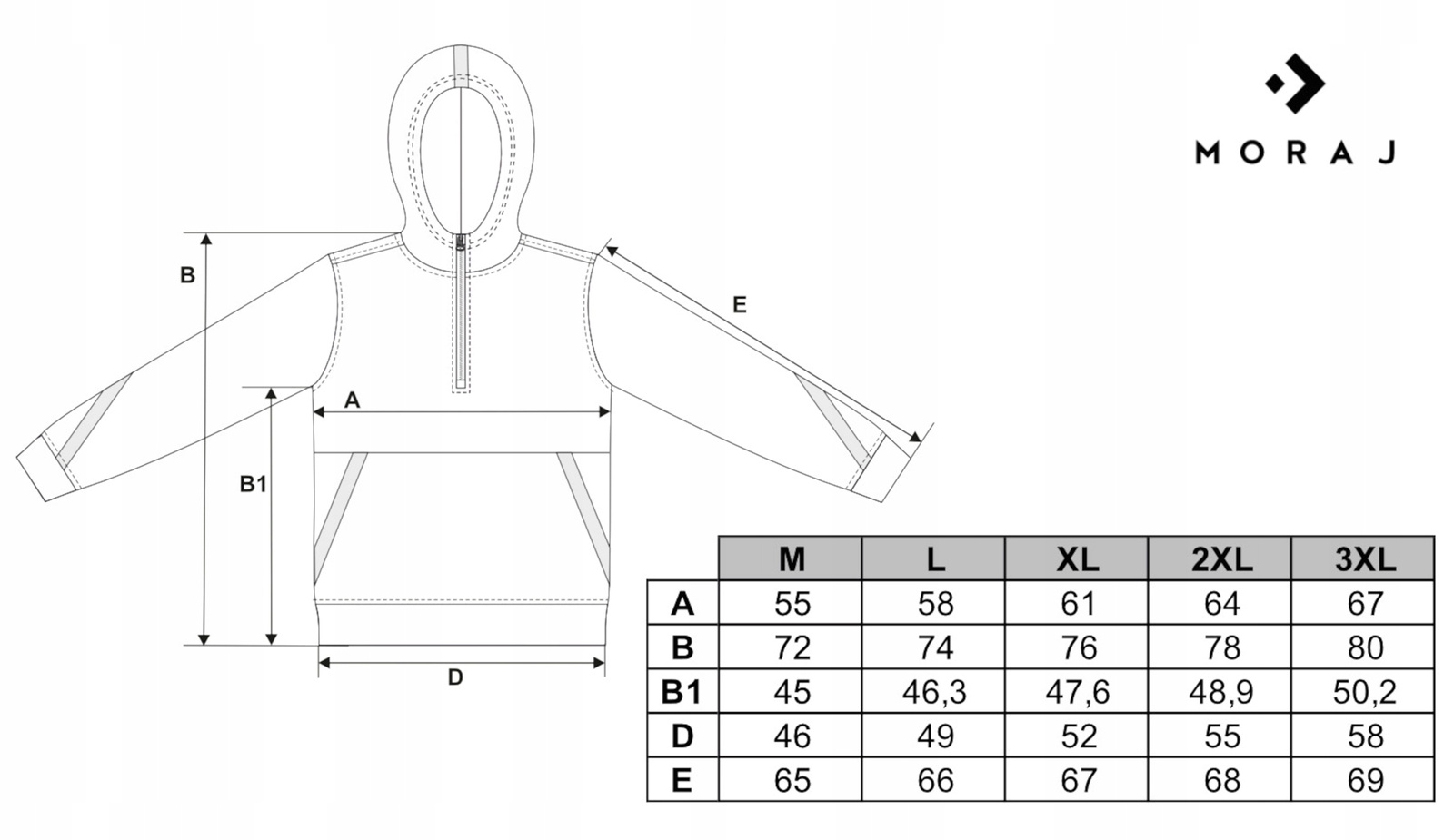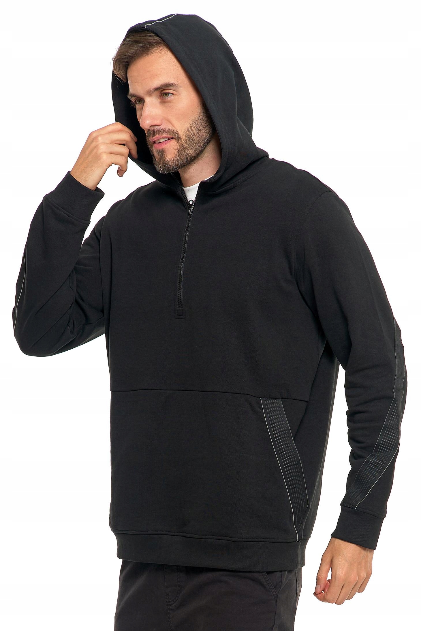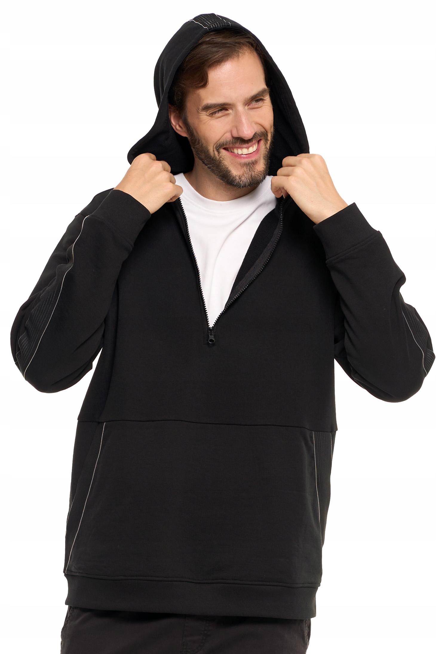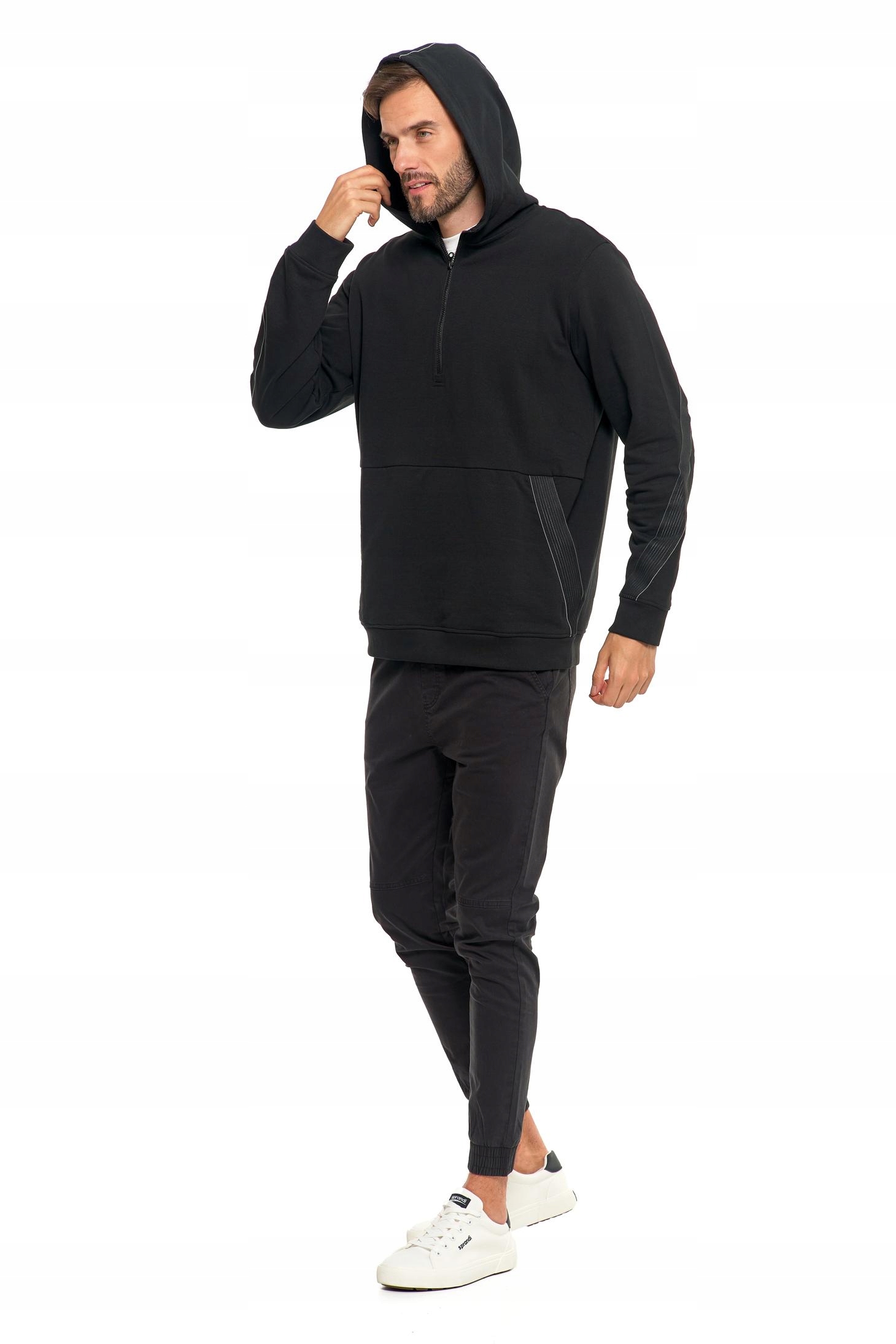 BLUZA MĘSKA Rozpinana do połowy z Kapturem Czarna Bawełniana MORAJ