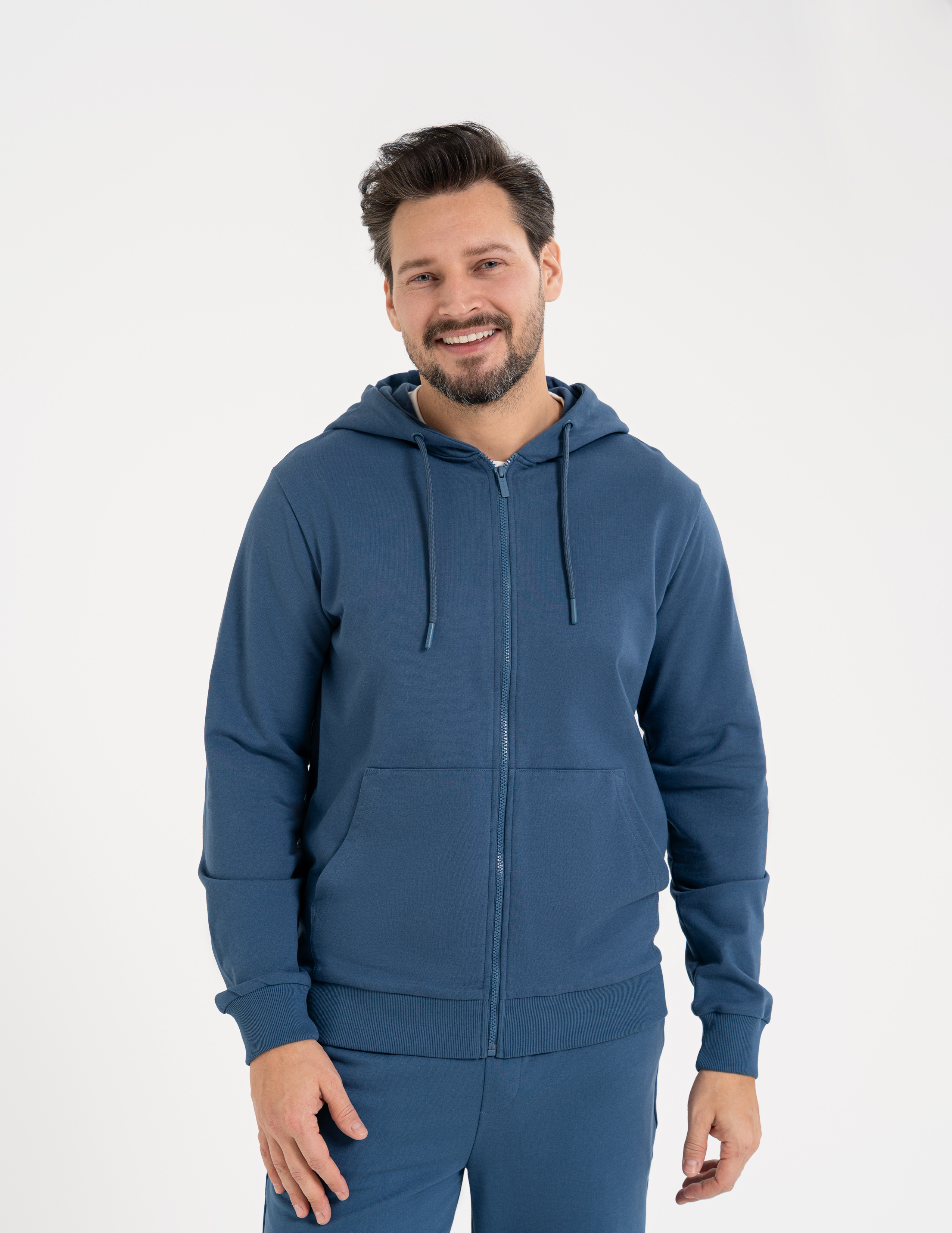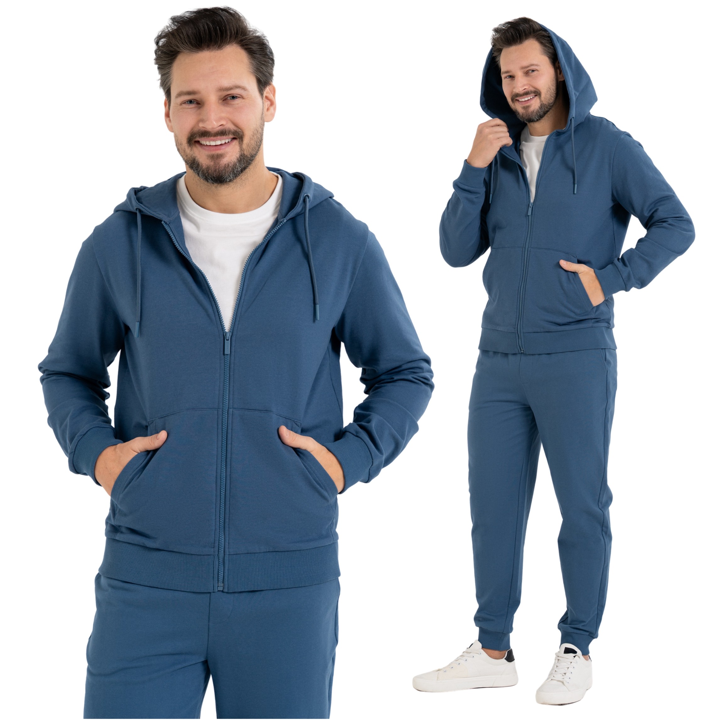 BLUZA MĘSKA ROZPINANA GŁADKA Z KAPTUREM I KIESZENIAMI MORAJ
