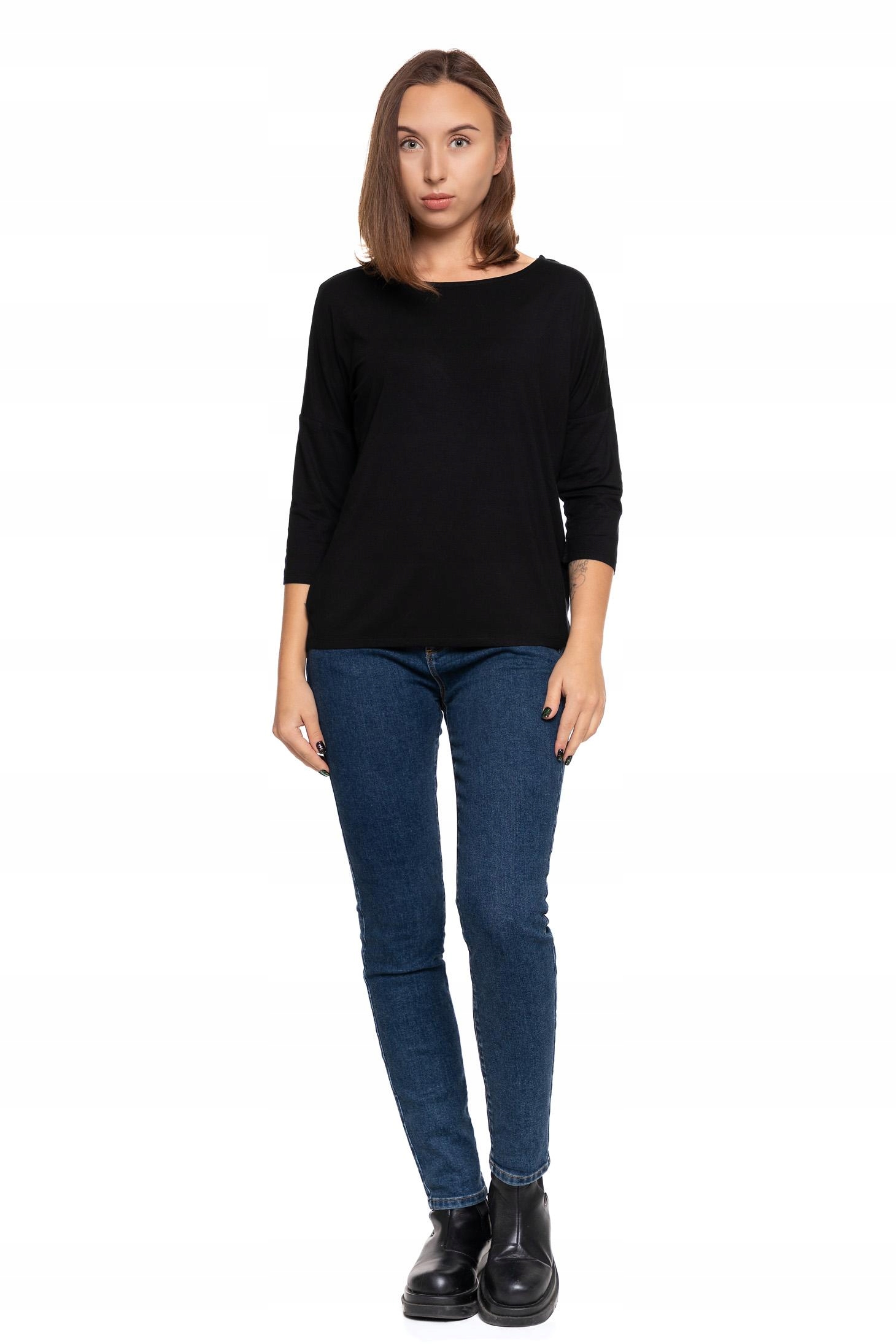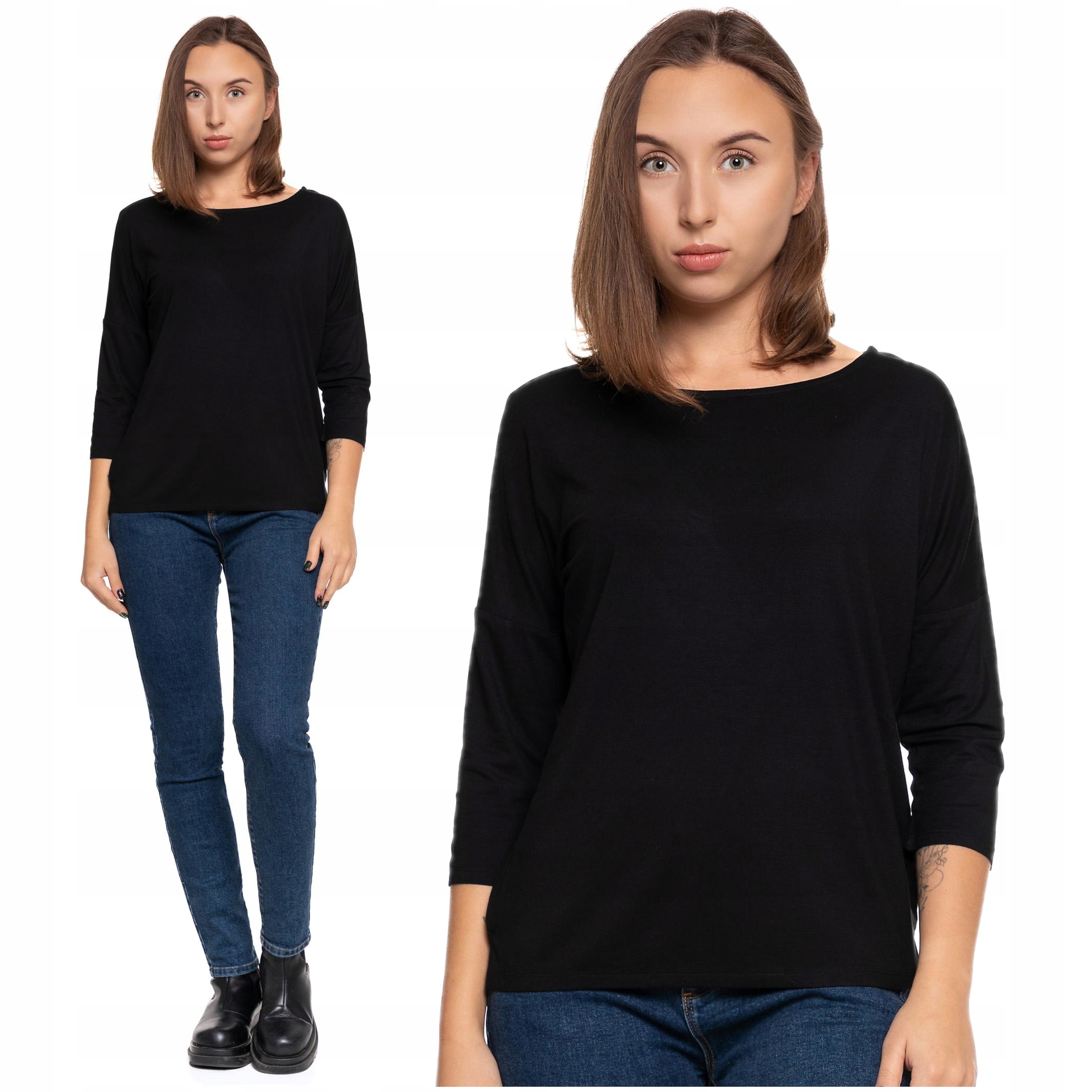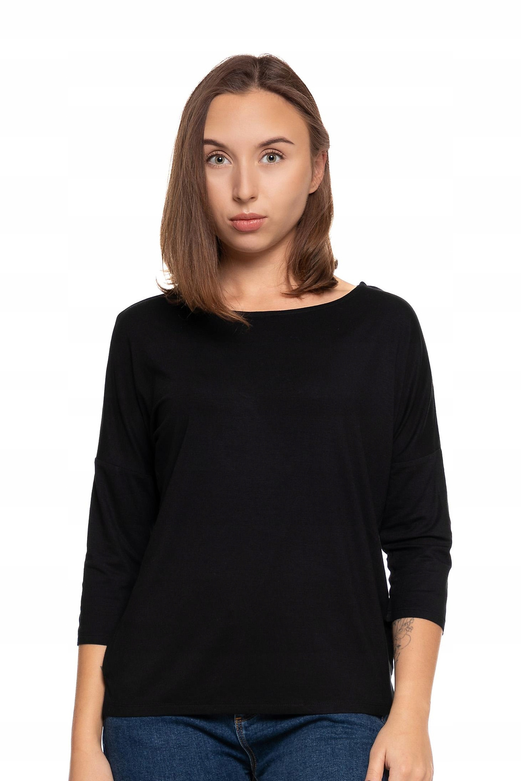 BLUZKA DAMKSA Rękaw 3/4 Czarna Koszulka Gładka Wiskozowa MORAJ