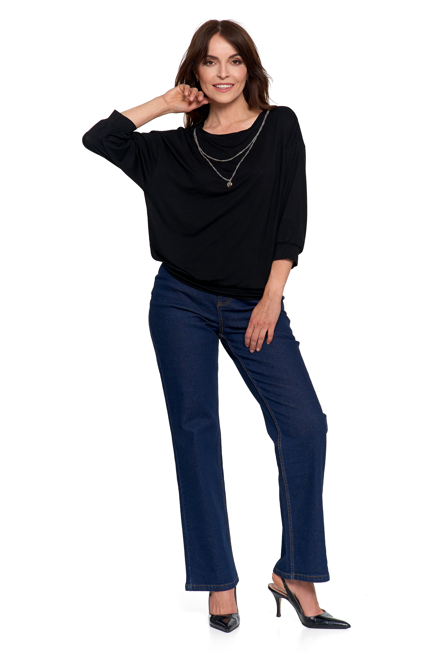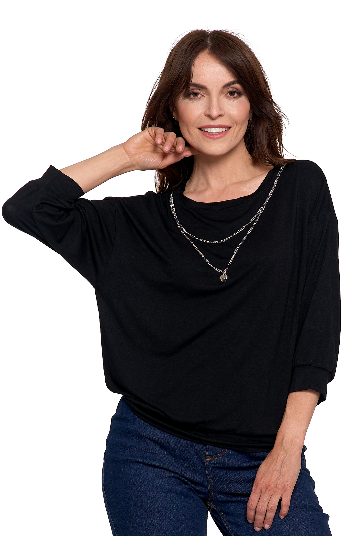 Ta damska bluzka to idealne połączenie komfortu i kobiecej elegancji, stworzone z myślą o uniwersalnym zastosowaniu. Luźny krój ze ściągaczem na dole w modnym fasonie bombki subtelnie podkreśla sylwetkę, jednocześnie zapewniając pełną swobodę ruchów.
