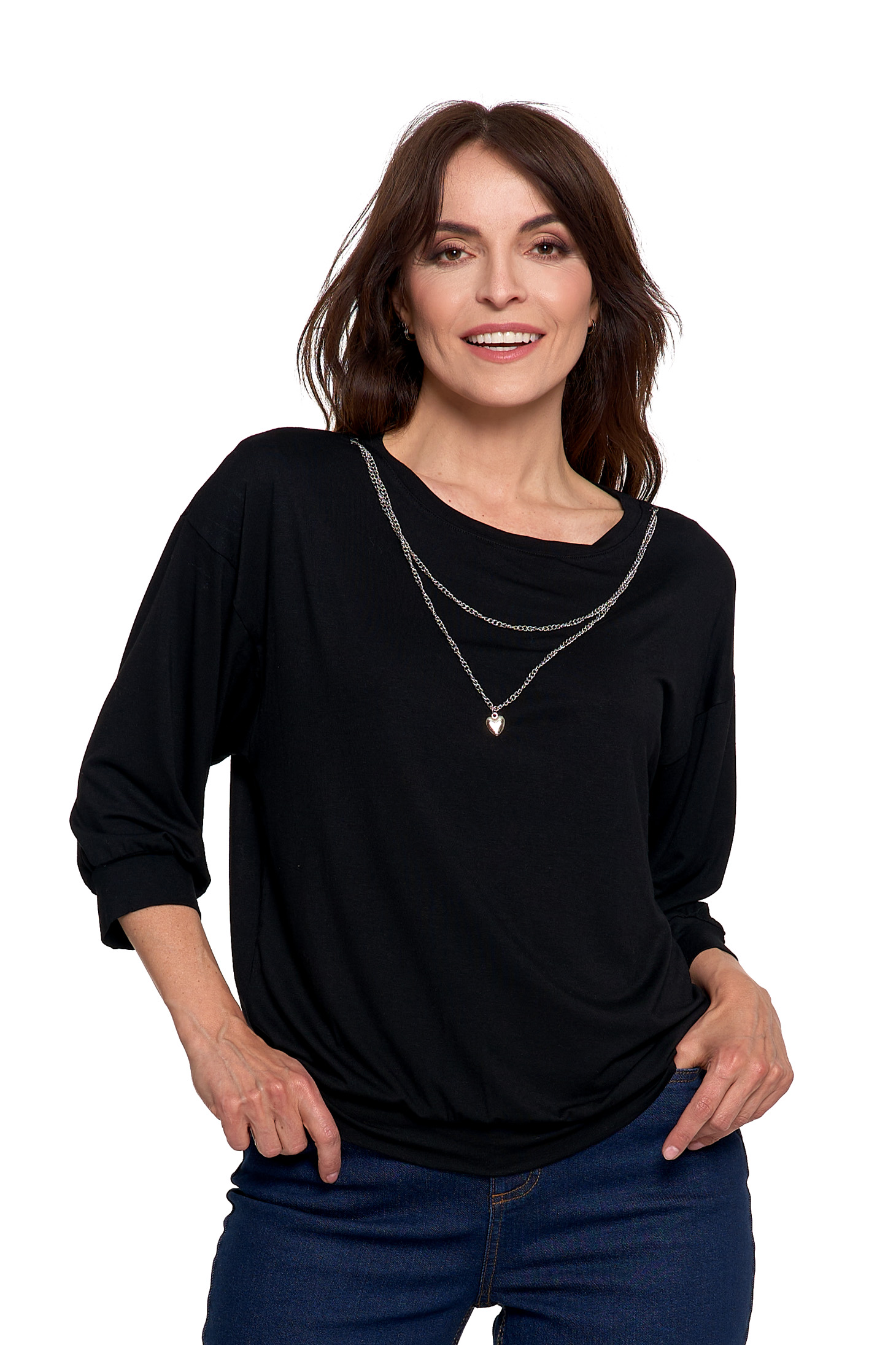 Biżuteryjny detal: Odpinany łańcuszek pełni rolę efektownej dekoracji. Możesz go zostawić na eleganckie okazje lub odpiąć, by uzyskać prostszą, klasyczną wersję bluzki.