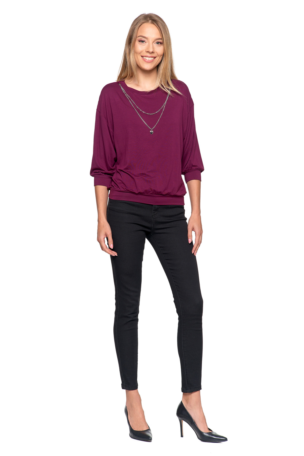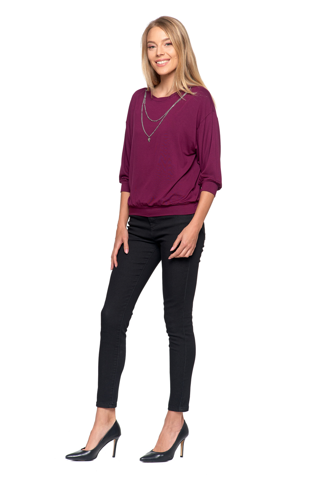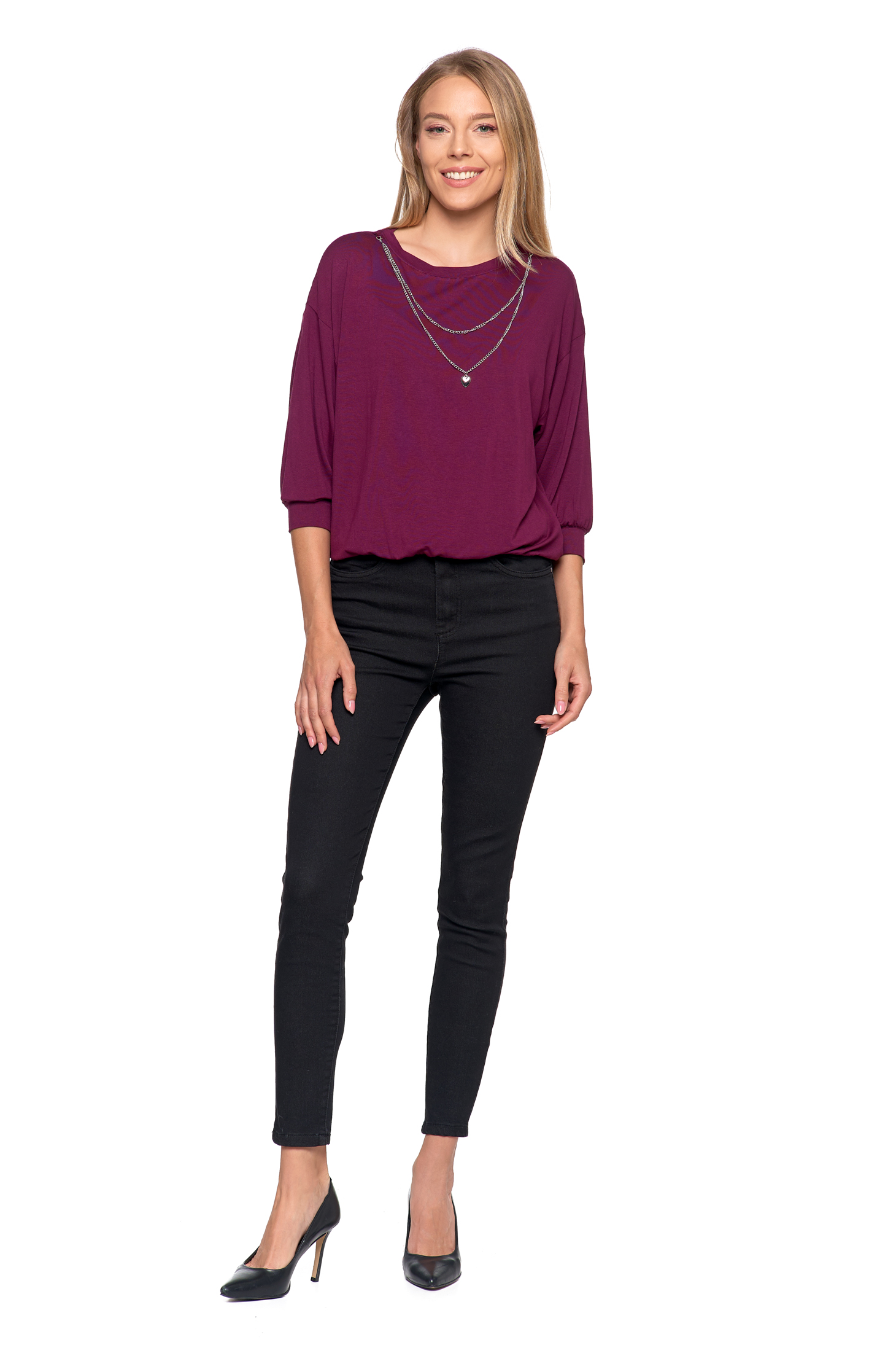Ta damska bluzka to idealne połączenie komfortu i kobiecej elegancji, stworzone z myślą o uniwersalnym zastosowaniu. Luźny krój ze ściągaczem na dole w modnym fasonie bombki subtelnie podkreśla sylwetkę, jednocześnie zapewniając pełną swobodę ruchów.