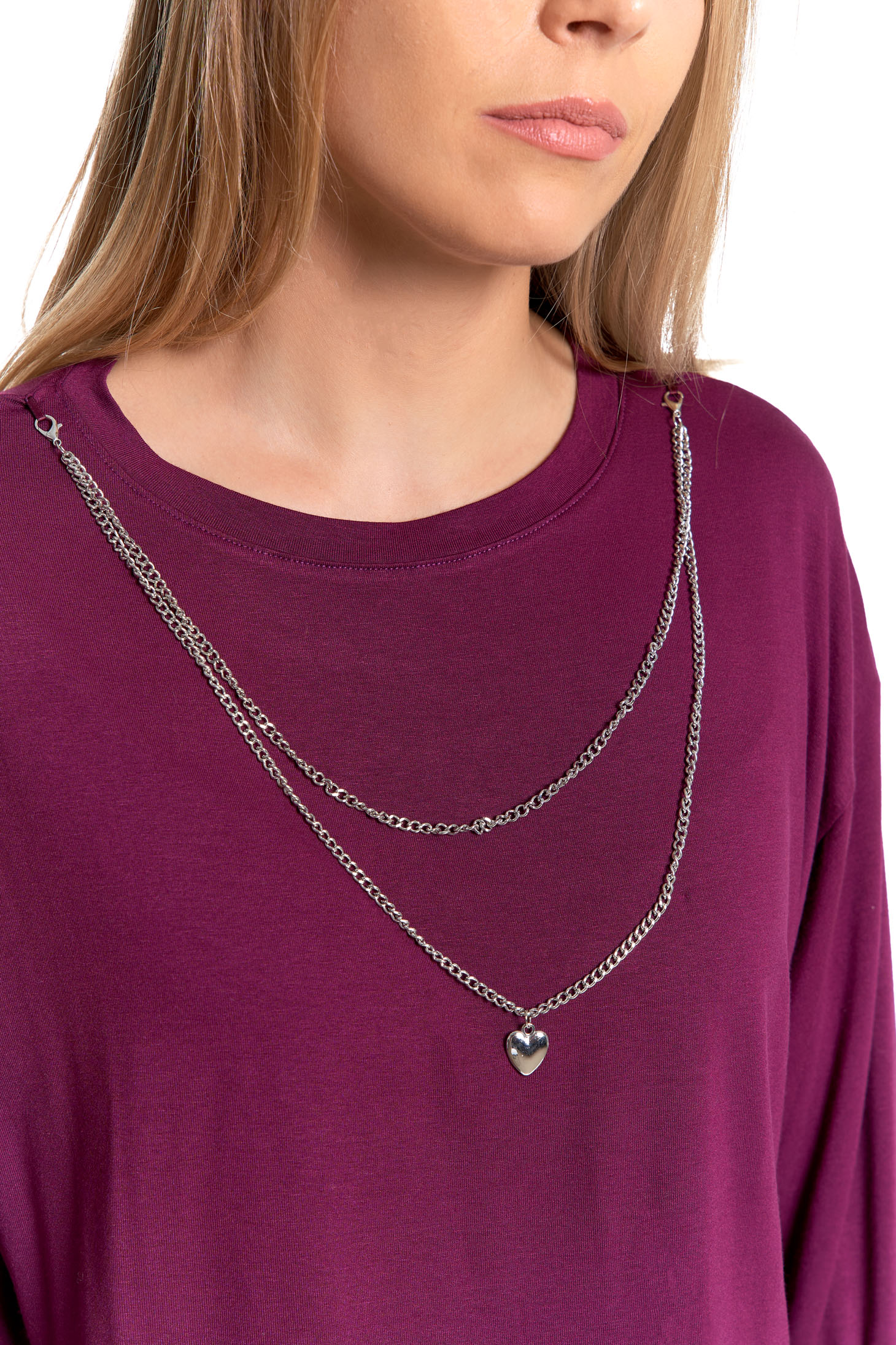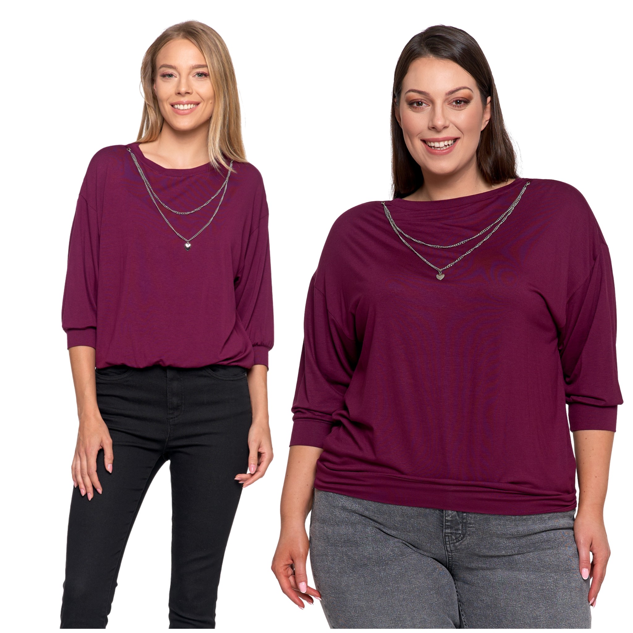 • Biżuteryjny detal: Odpinany łańcuszek pełni rolę efektownej dekoracji. Możesz go zostawić na eleganckie okazje lub odpiąć, by uzyskać prostszą, klasyczną wersję bluzki.