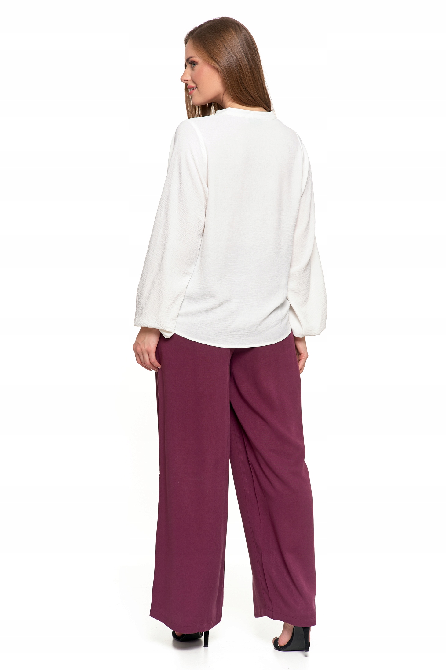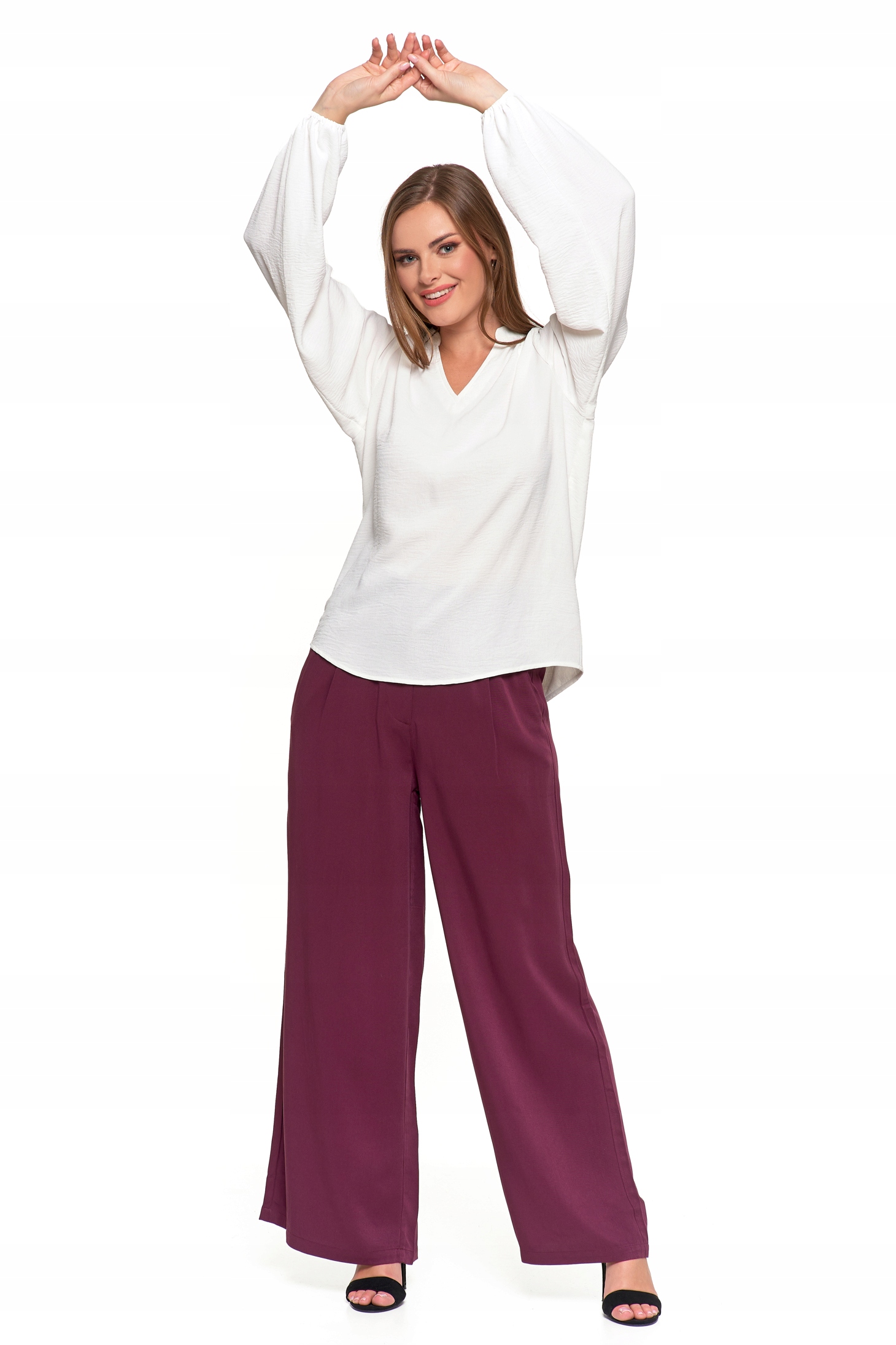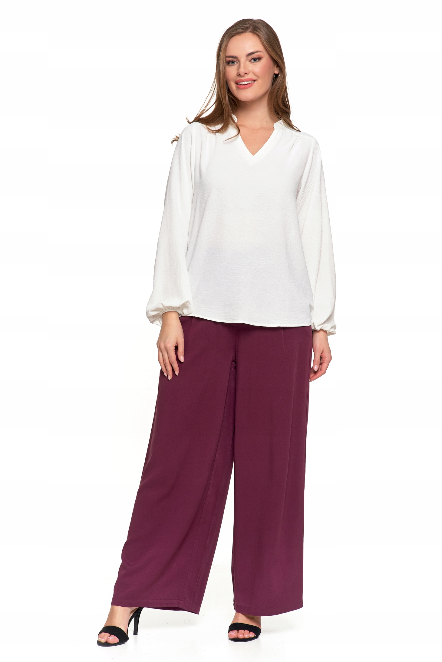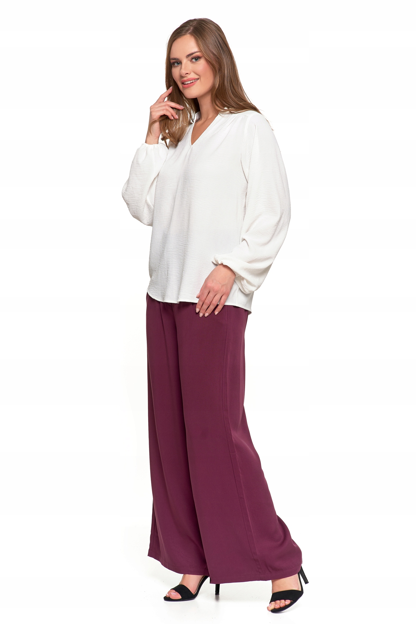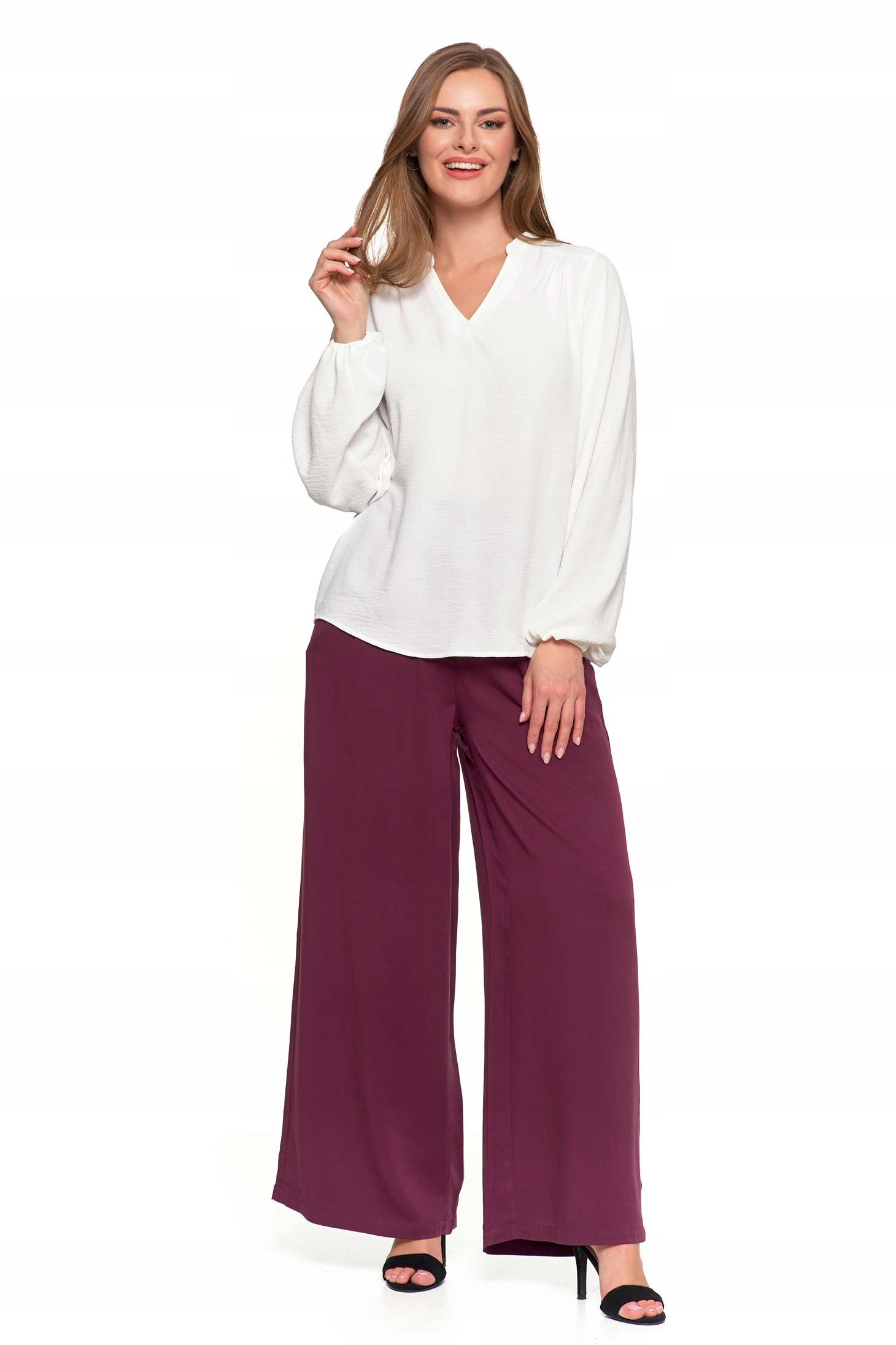 Bluzka Damska Elegancka Koszula Dekolt w Serek Długi Rękaw Zwiewna MORAJ