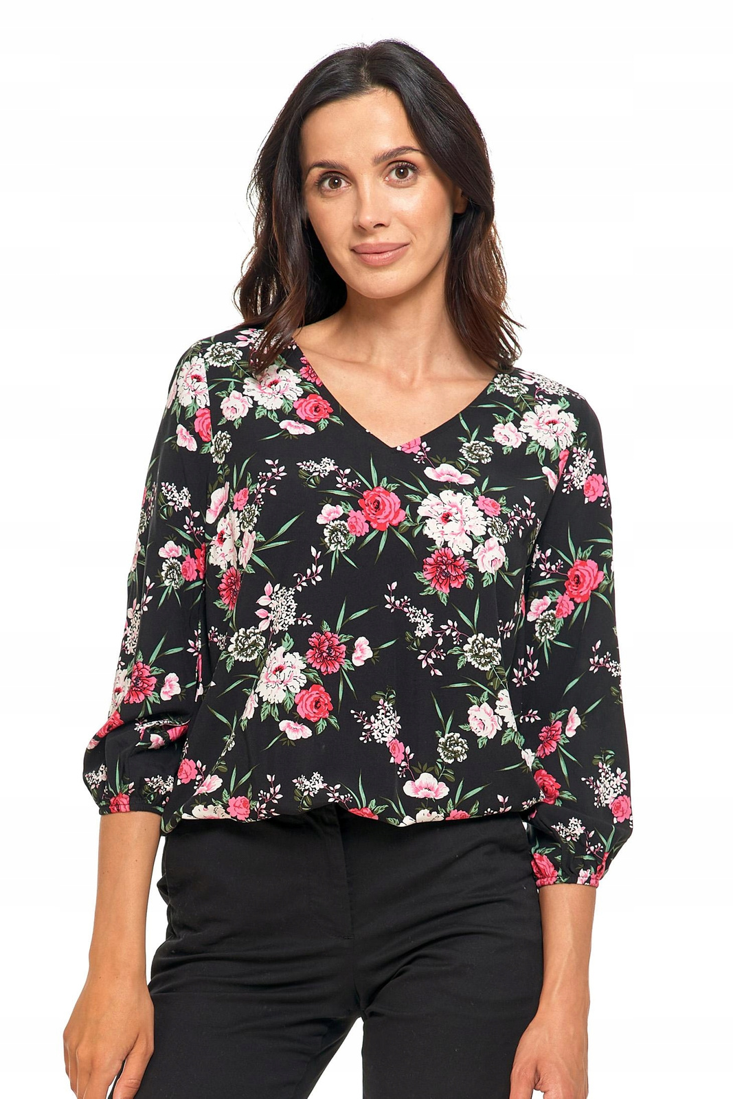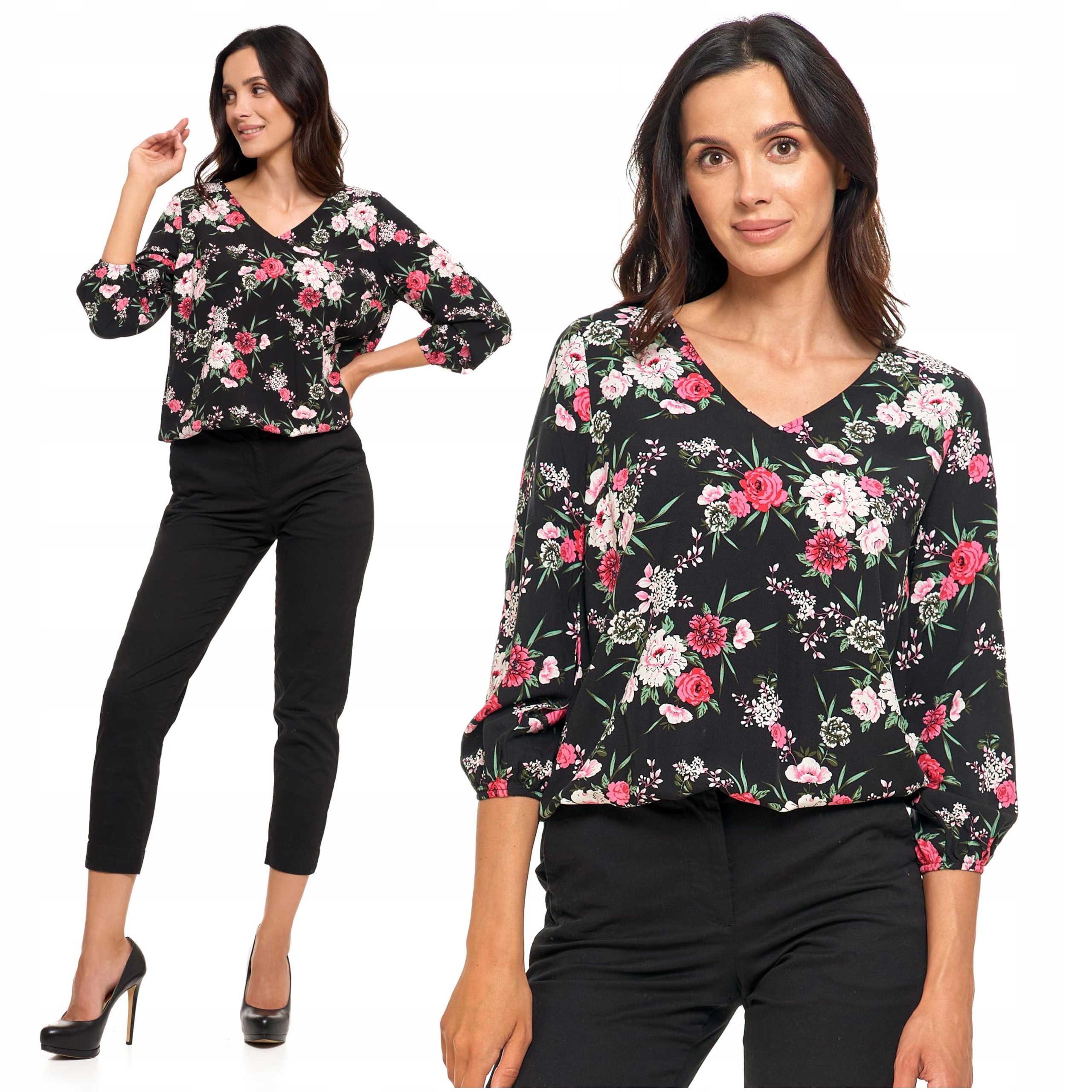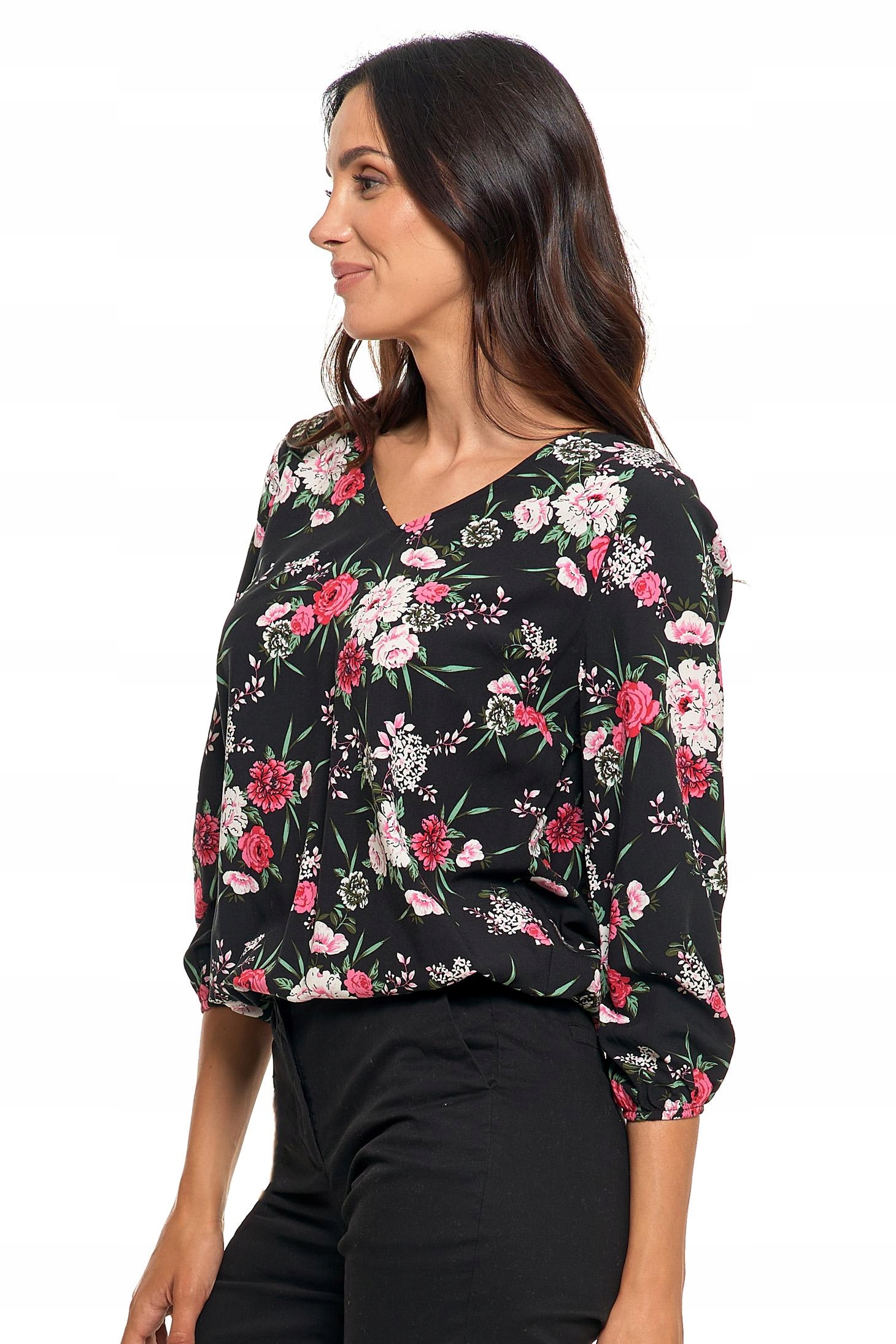 Bluzka Damska Elegancka w Kwiatki Modna Rękawy Ze Ściągaczem MORAJ
